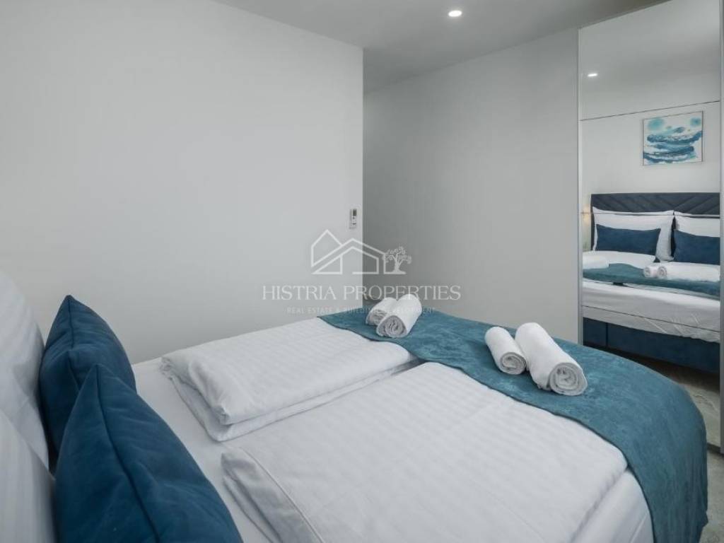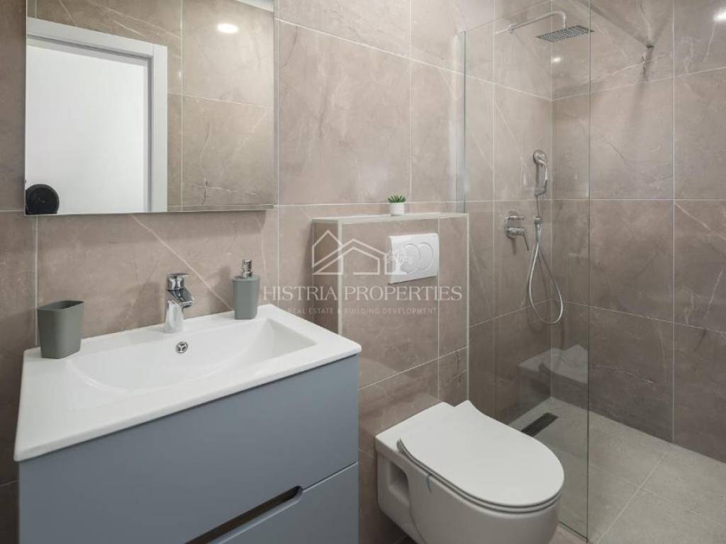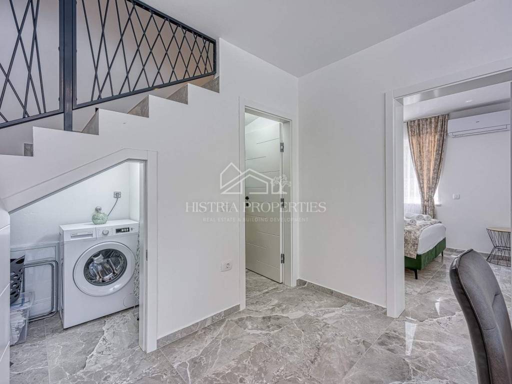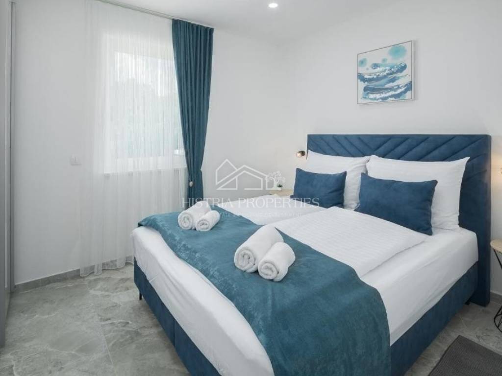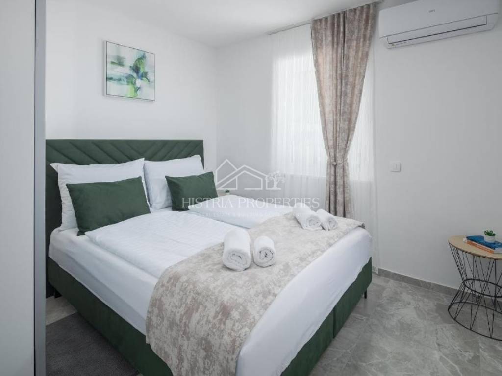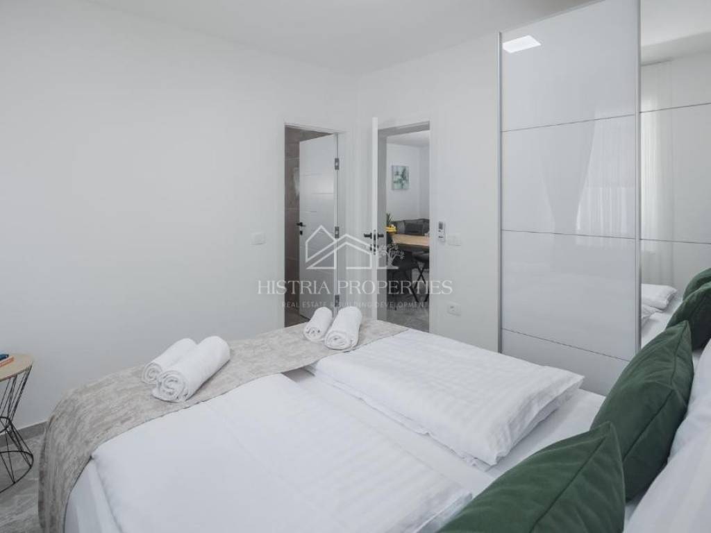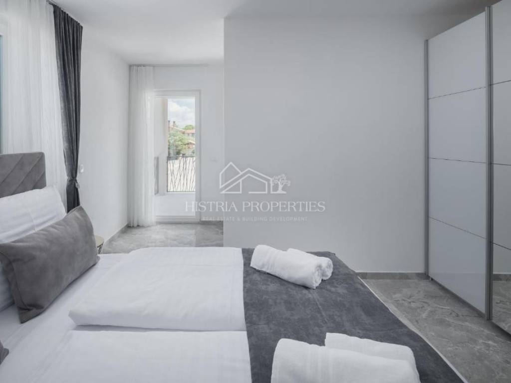 In the vicinity of the city of Poreč, in a peaceful settlement surrounded by forests and nature, this new house with a swimming pool is for sale.