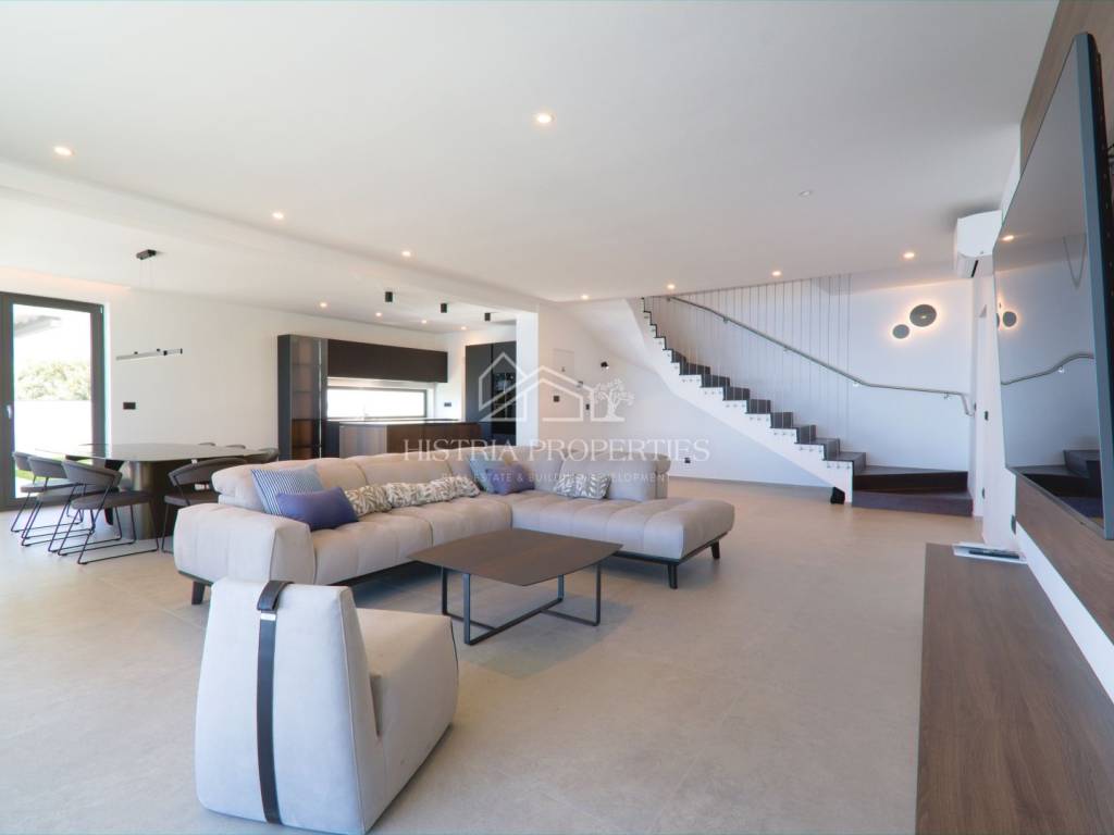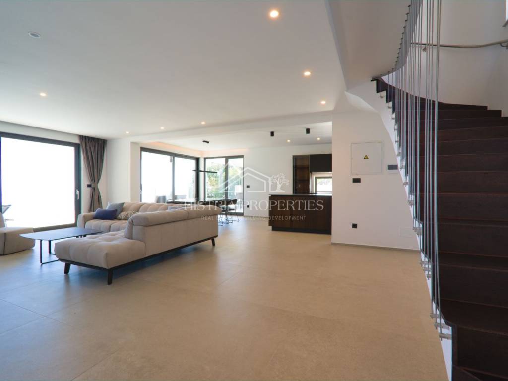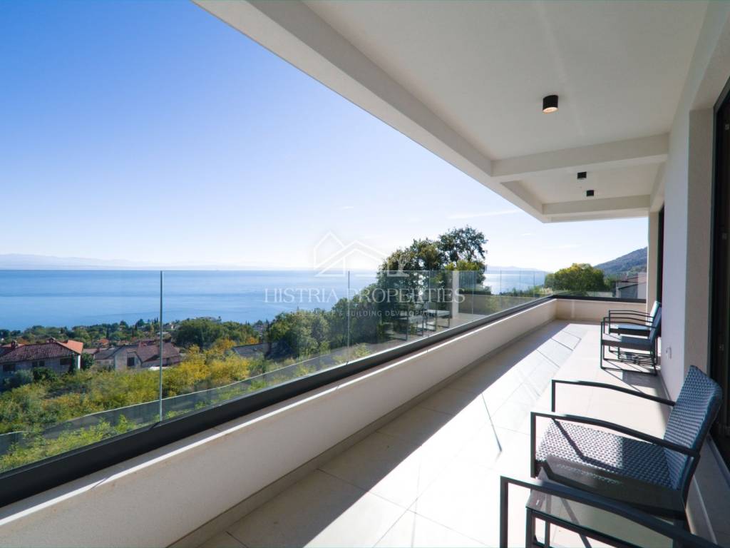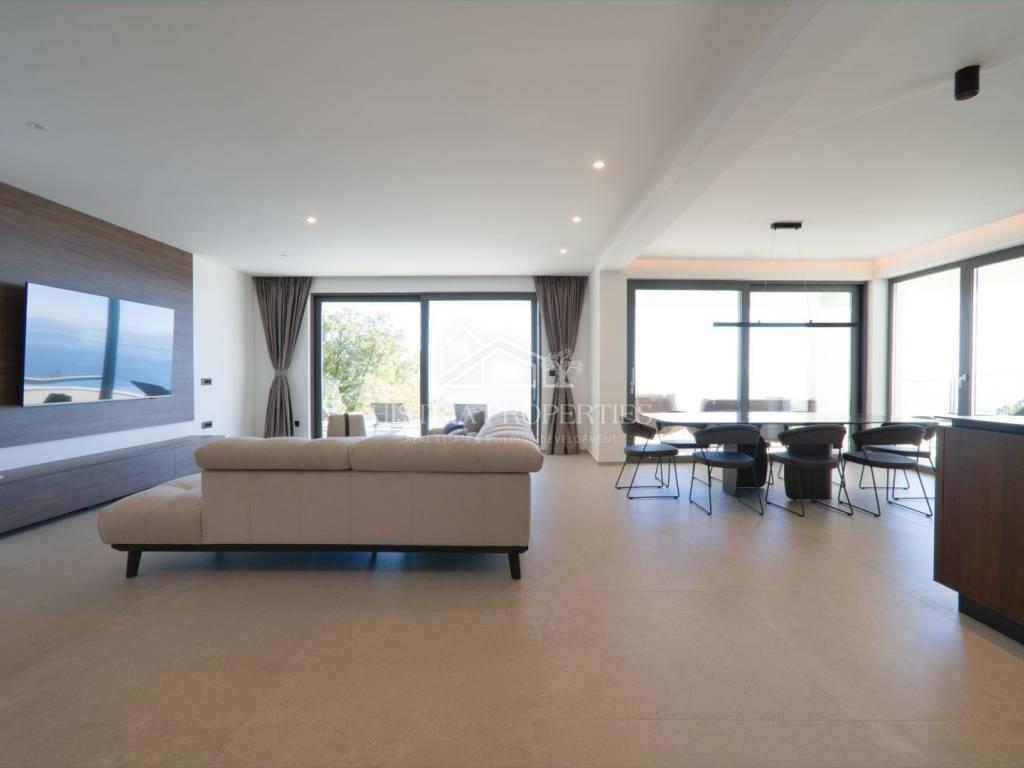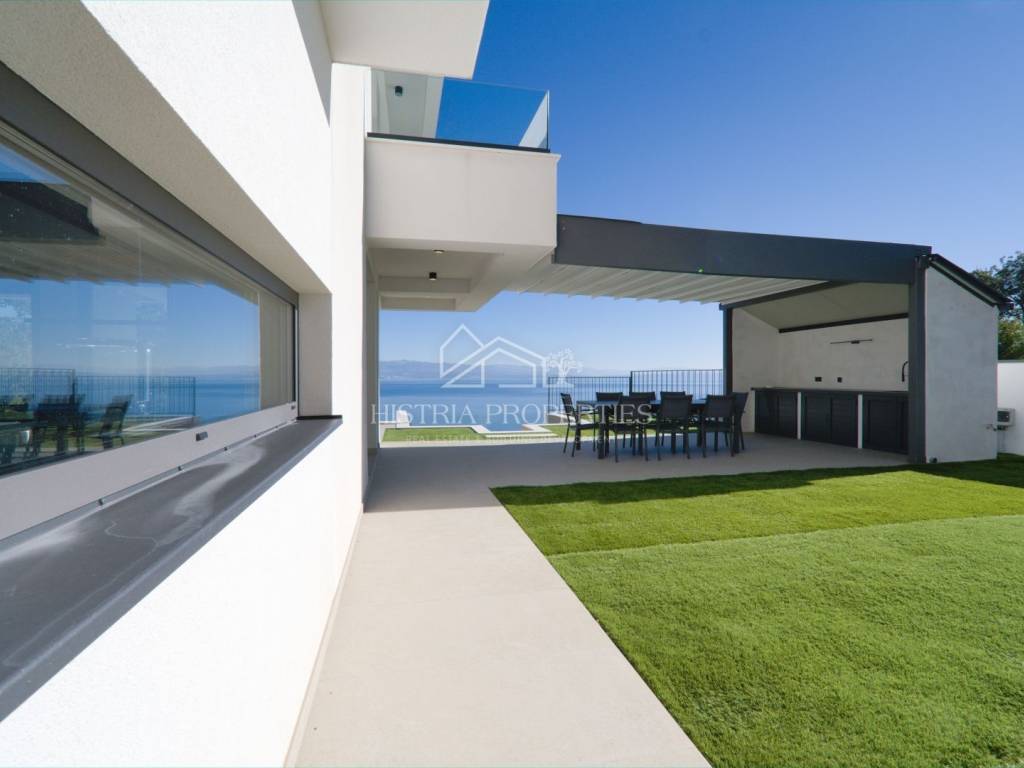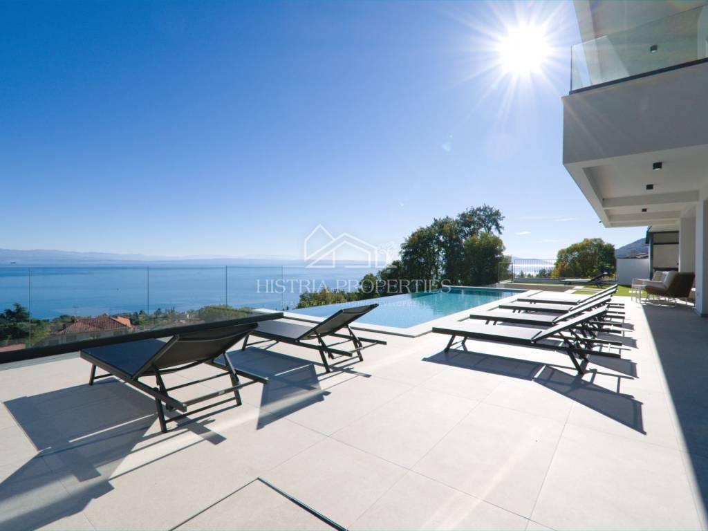 This truly luxurious and modern villa with a unique 180° view that stretches across the entire Kvarner Bay and its islands, is located in a quiet location not far from the beautiful Opatija and will certainly not leave you indifferent.