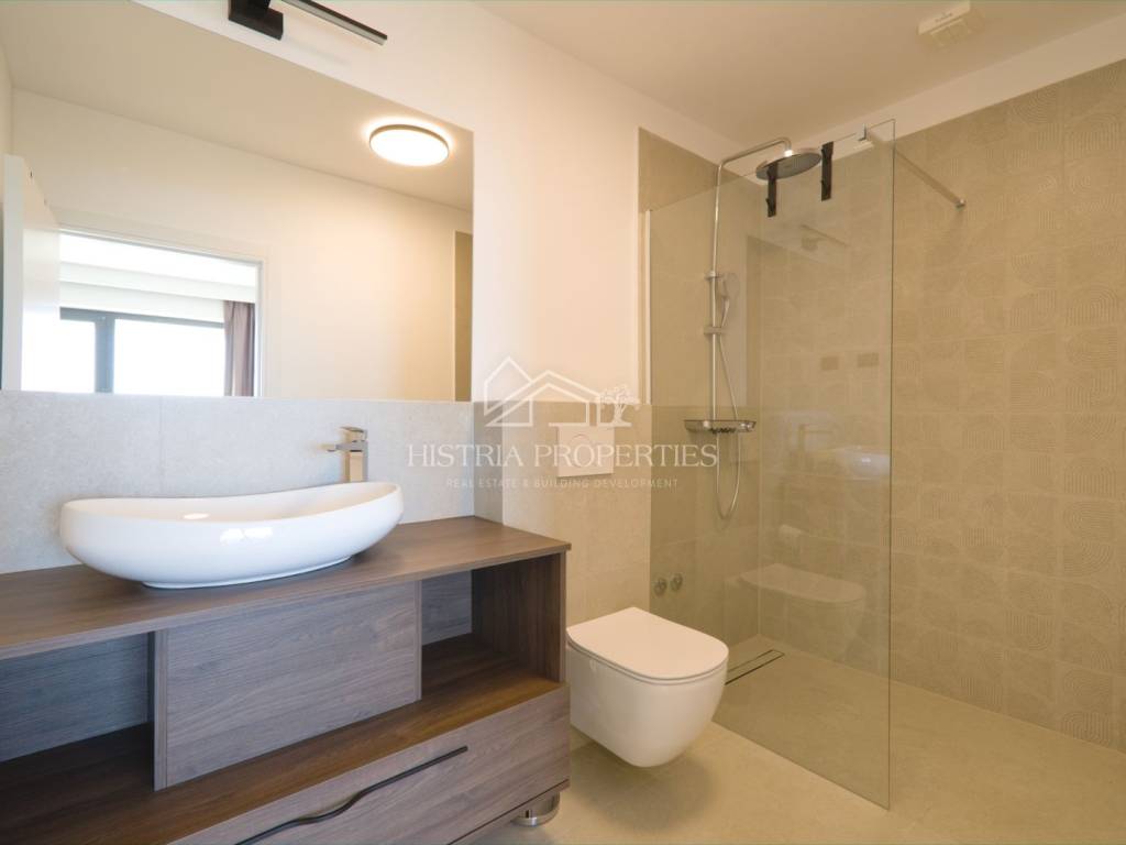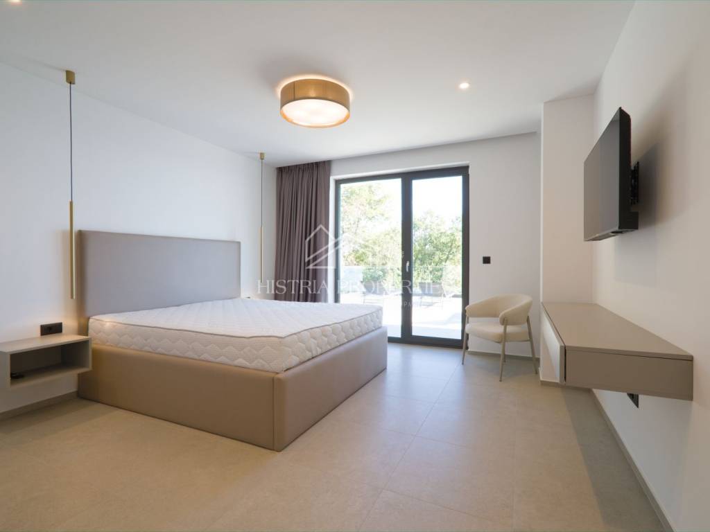 The villa itself is built to an exceptionally high standard (aluminum joinery with triple-glazed glass, underfloor heating with a heat pump, air conditioning in all rooms, 1st class ceramics, kitchen and custom-made furniture...).
