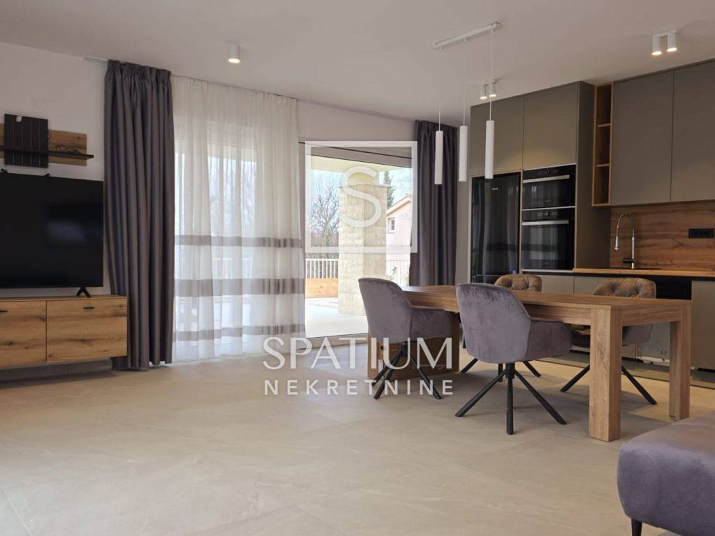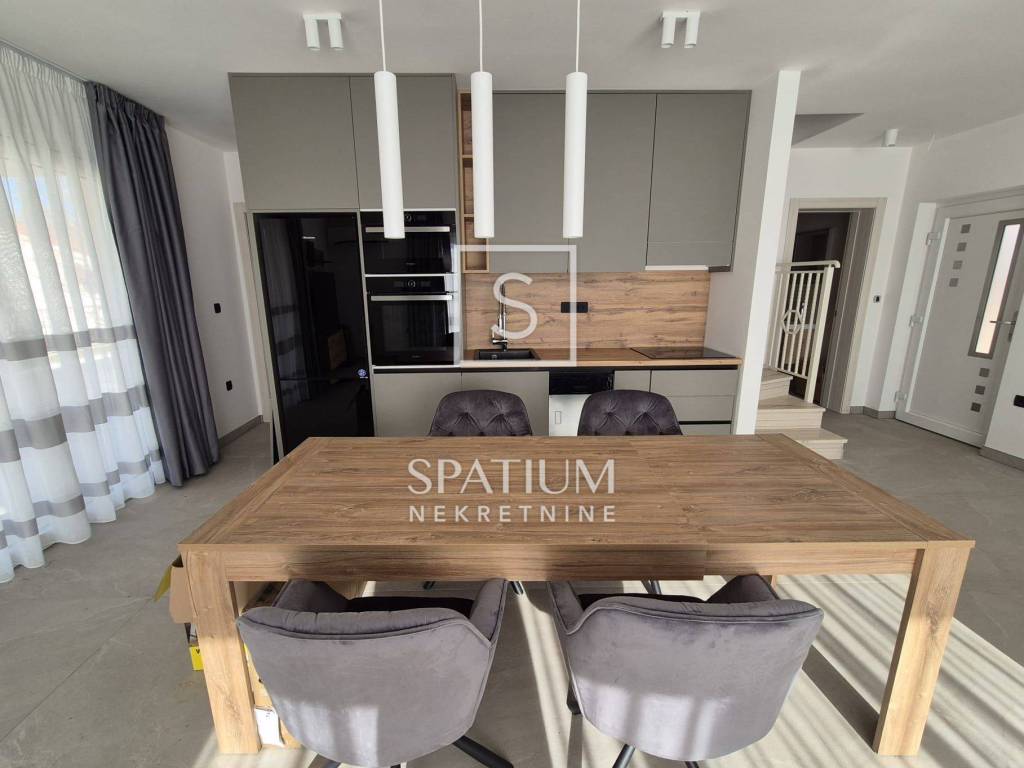 KRK, MALINSKA, we offer a detached house with a swimming pool in a quiet location, newly built. Located on a plot of 586m2, living area of 143m2, it consists of a ground floor and first floor, connected by an internal staircase. Ground floor: entrance hall guest toilet storage room bedroom with private bathroom kitchen, dining room and living room with fireplace exit to the courtyard terrace with swimming pool and sundeck First floor: three bedrooms, two of which have their own bathroom and exit to the balcony Equipment includes: heating/cooling, fireplace in the living room, underfloor heating with heat pump, inverter air conditioning in each room, video surveillance and alarm, high-quality ceramic floor coverings. The property is fully furnished. Courtyard: 16m2 swimming pool, sundeck outdoor shower covered gazebo with barbecue parking spaces for several vehicles Mediterranean garden with irrigation system It is located in a quiet location, 1800 m from the sea, surrounded by nature. Suitable for vacation, family life or an opportunity to invest in tourism. VAT is included in the price and the buyer does not pay real estate tax.