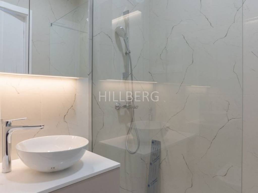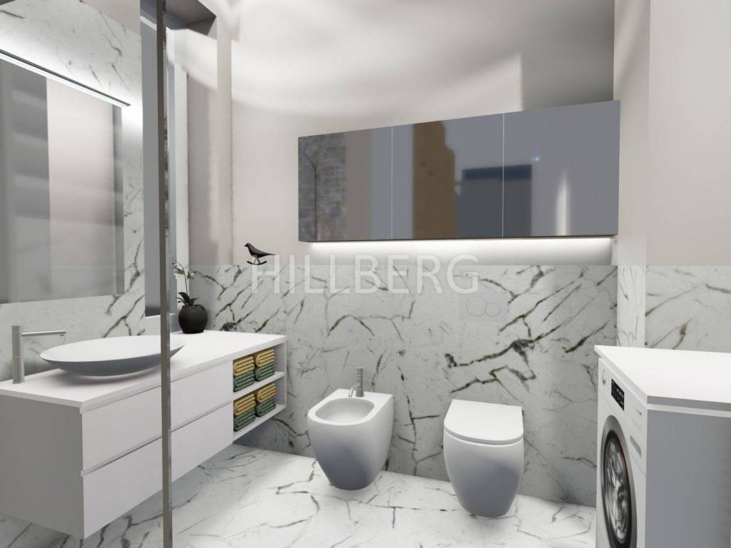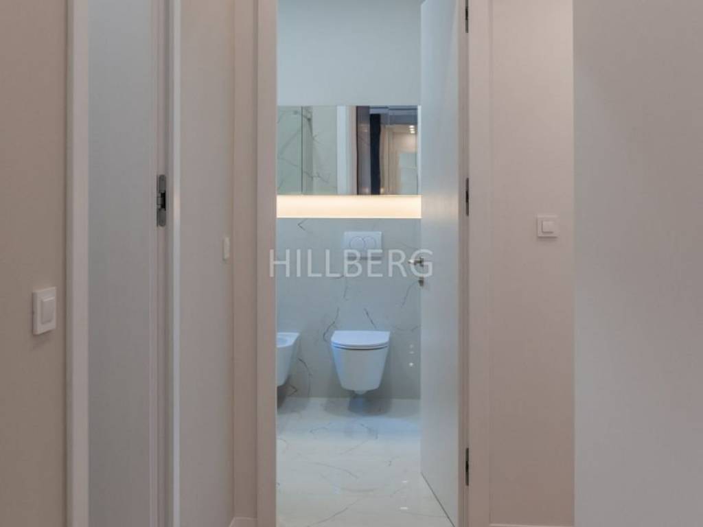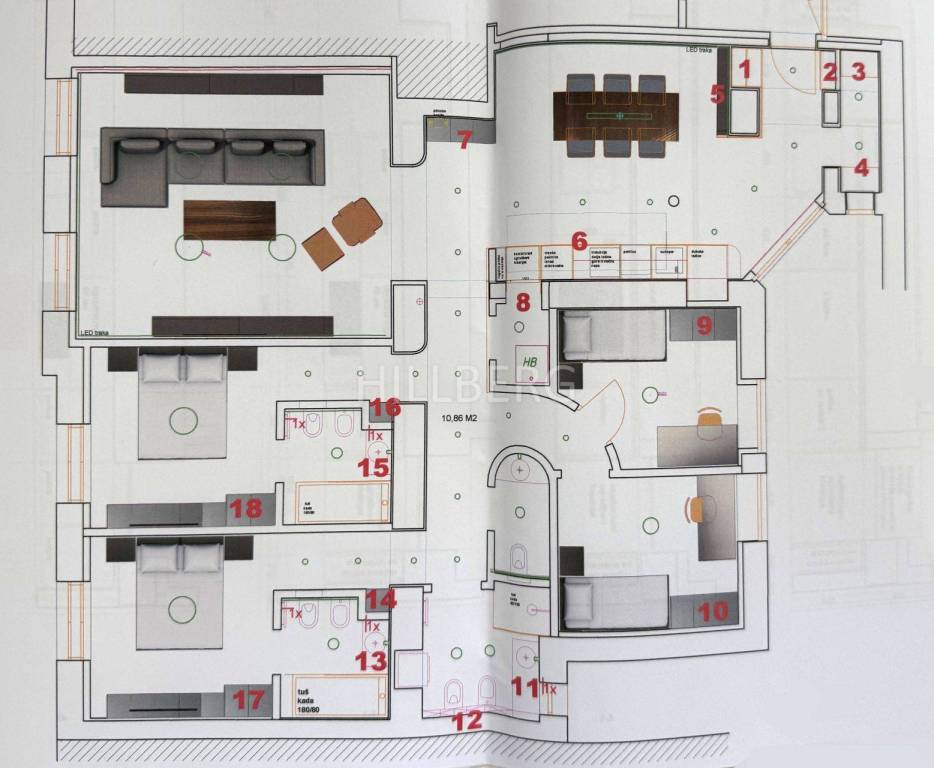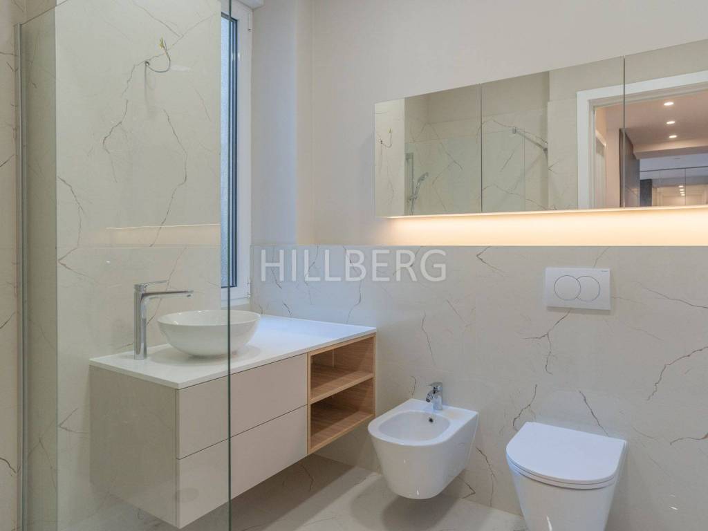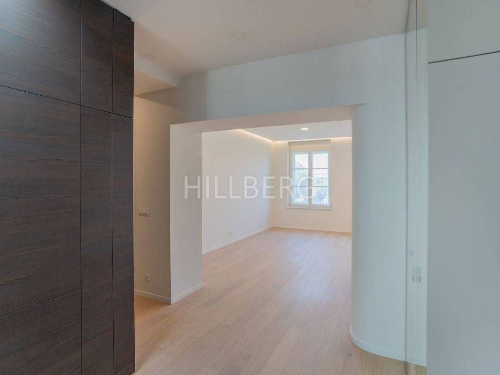 The apartment is equipped with gas central heating, underfloor heating in bathrooms, and air conditioning in every room. It is offered partially furnished, with the option of further furnishing by arrangement.