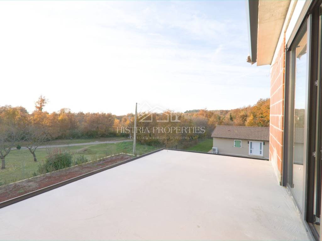 The villa itself is built with quality with rustic details that fit perfectly into this landscape and the small village that surrounds this house. On the ground floor there is a living room with an open-plan kitchen and dining area connected to a covered terrace, a swimming pool and a beautifully decorated sundeck around it. On this floor there is a bedroom with its own bathroom and access to the terrace, a technical room and a separate toilet. On the first floor we have 2 bedrooms with their own bathrooms and spacious terraces overlooking the greenery.