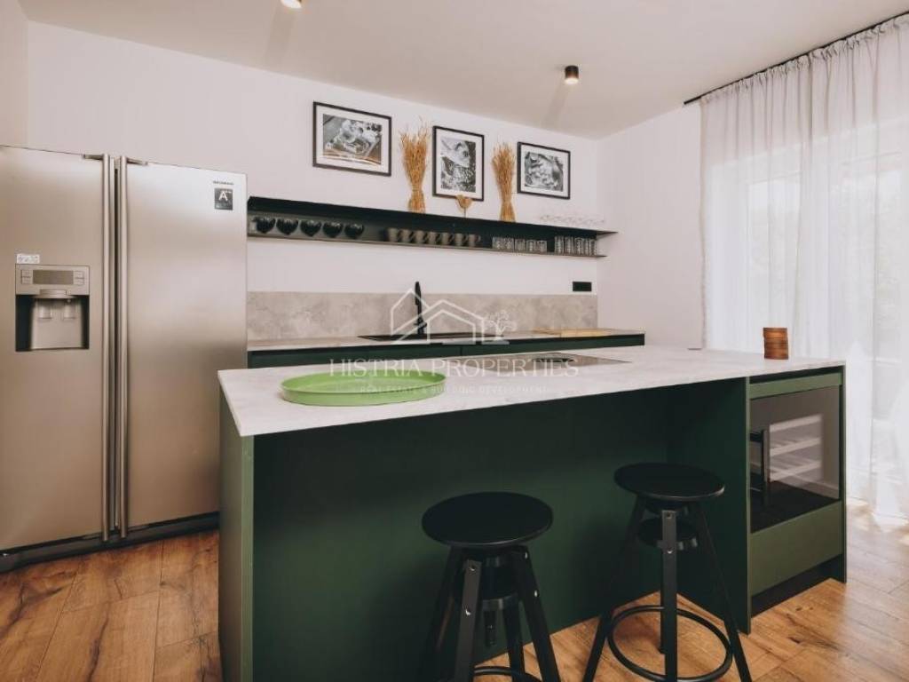 In a quiet location near the town of Poreč, not far from the Istrian Y, is this fully equipped and furnished holiday home surrounded by greenery and only a few houses.