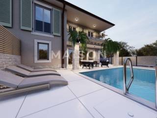Location: Malinska, close to the sea and town center Style: Modern Mediterranean Parking: 2 parking spaces Pool area: 21m² Completion of works: 2025 Ground Floor: A spacious open-plan area that includes: