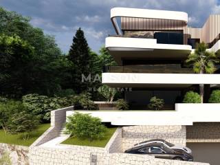 This luxurious apartment in a newly built building is located on the first floor, near the center of Lovran, in an exceptional location that offers peace and privacy while being close to all necessary amenities. The apartment has a total area of 266.69 m². The rooftop terrace, which measures 70.79 m², features a private pool, and the space is perfectly designed to enjoy the Mediterranean climate and stunning sea views. From the living room, you step onto a covered terrace of 24.64 m², while the remaining uncovered part of the terrace covers 19.89 m², providing additional space for outdoor enjoyment.