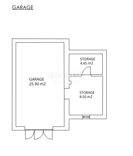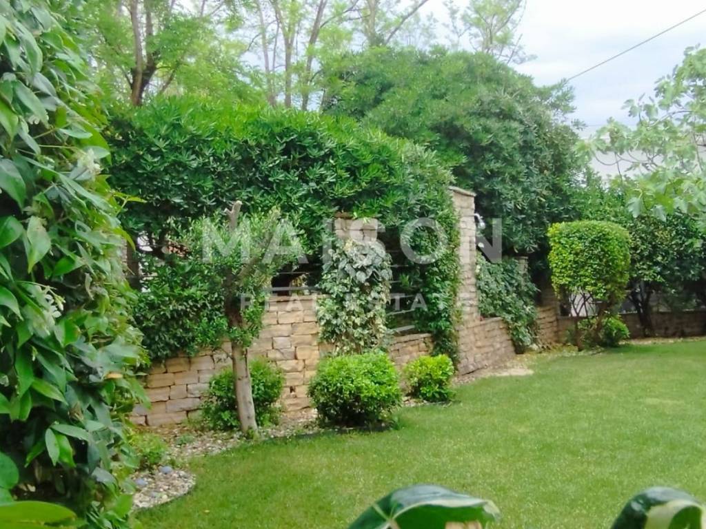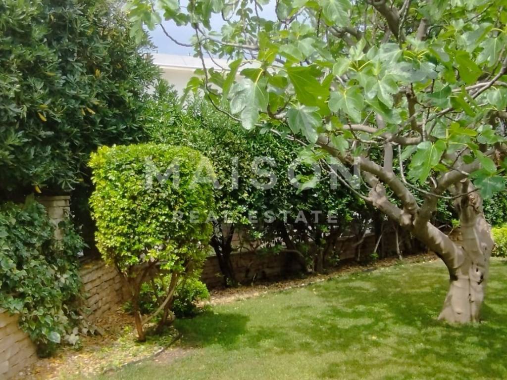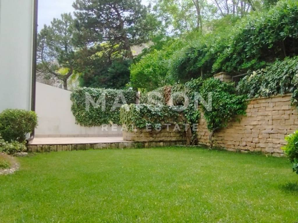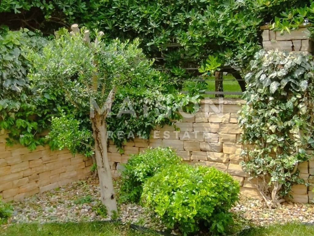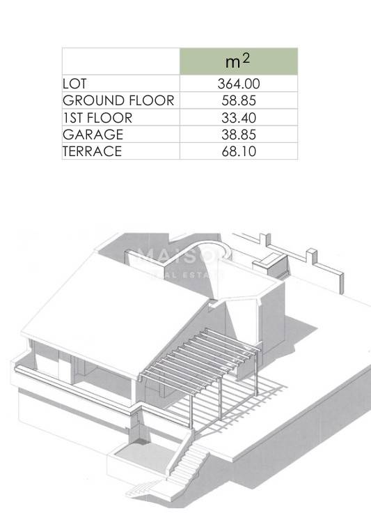 The basement includes a 25 m² garage and two storage rooms with a total area of 13 m². Behind the house, there is a 26 m² barbecue terrace, seamlessly connected to a beautifully landscaped Mediterranean garden with an automatic irrigation system.