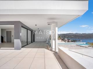 On the terrace, which also offers a panoramic sea view, there is a heated pool with a sunbathing area, perfect for relaxation and enjoying the Mediterranean climate.