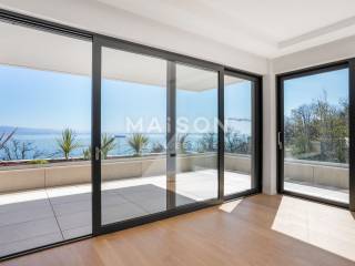 Luxury apartment located near the center of Opatija, with a panoramic sea view. This exceptional location provides complete privacy while being in close proximity to all necessary amenities. The apartment is duplex and covers 420.82 m², located on the ground floor and the first floor.