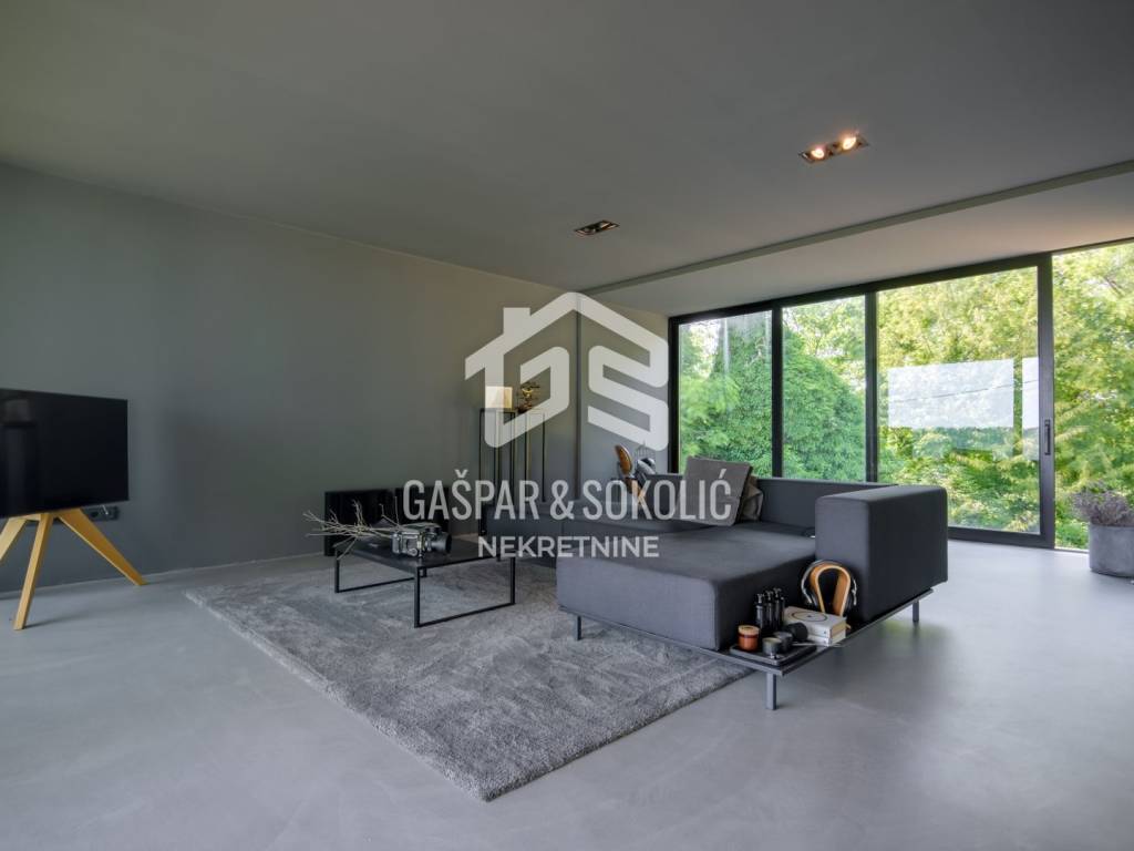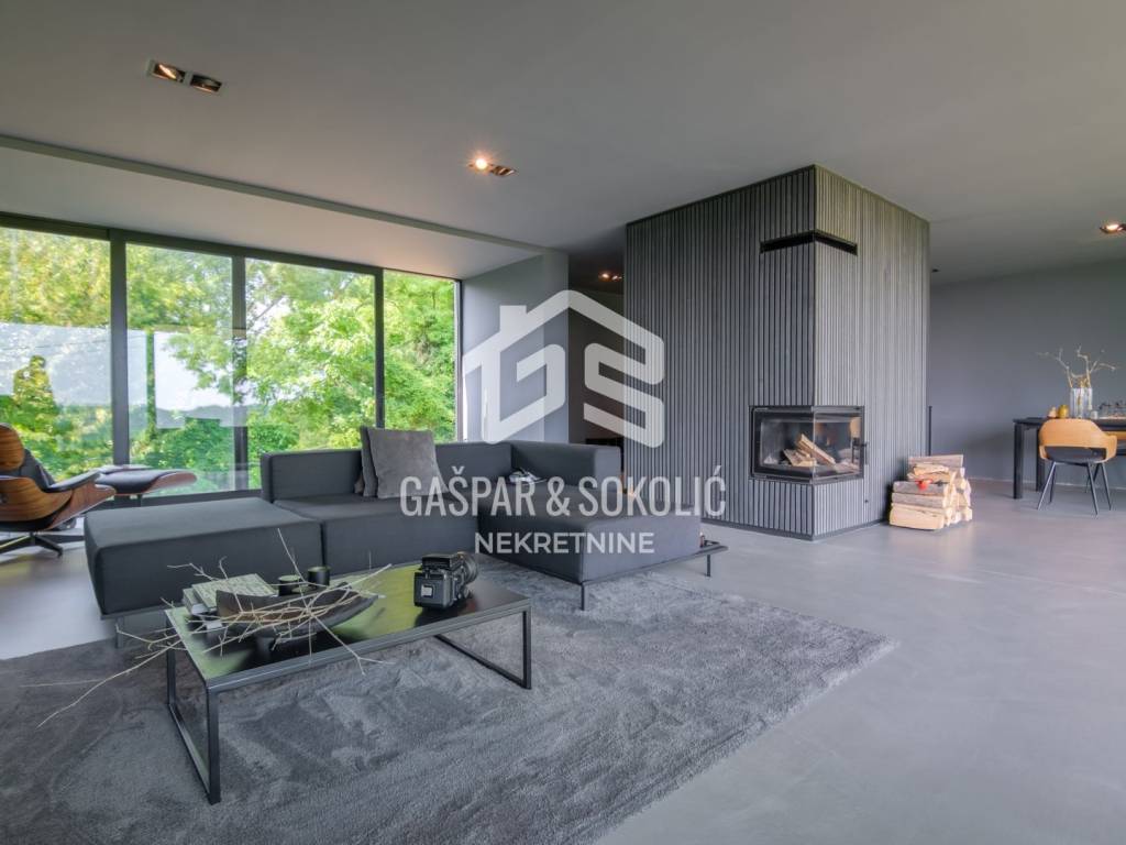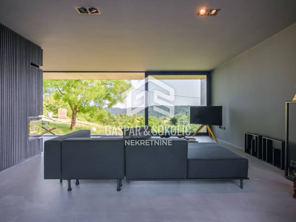 For sale is a luxurious modern family home located in an idyllic setting near Samobor, on a spacious plot of 993.8 m² surrounded by greenery. This impressive property stands out with contemporary architectural solutions, high-quality construction, and energy-efficient design, making it the ideal home for families seeking a comfortable and modern living space.