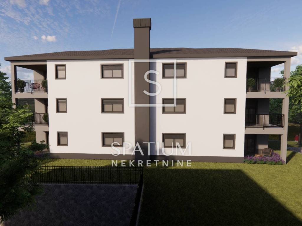 JUŠIĆI, we offer an apartment in a new building located in a quiet area. It consists of two bedrooms, dining room with living room, kitchen, hallway, bathroom and terrace. It has a parking space in the garden. Underfloor heating is electric, ceramic, parquet, PVC joinery with electric aluminum blinds. Six apartments in the building, two semi-detached buildings. On the ground floor there is a storage room where the boiler room is located. The facilities are under construction, under the roof, and the planned completion of the works is the end of 2023. Square footage: - kitchen and dining room 14.00 m2 - living room 15.48 m2 - room 1 11.47 m2 - room 2 11.6 m2 - bathroom 6.12 m2 - corridor 5.88 m2 - terrace 12.25 m2
