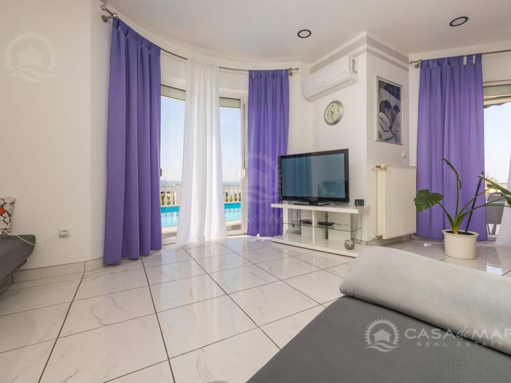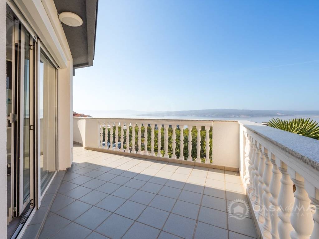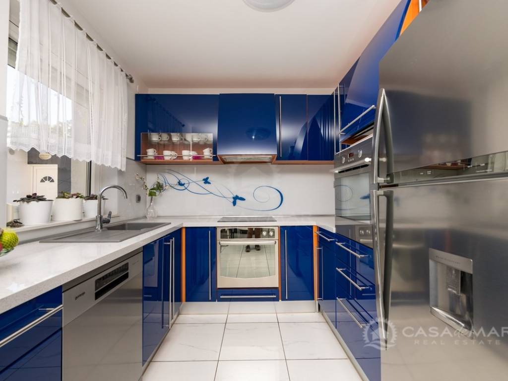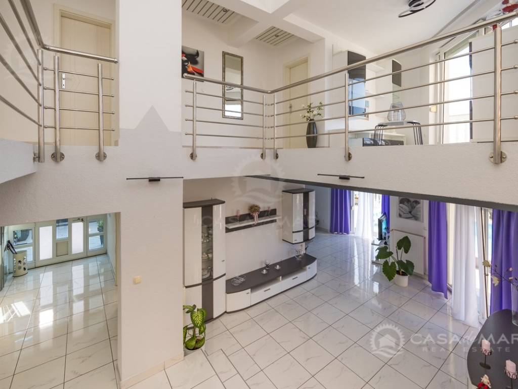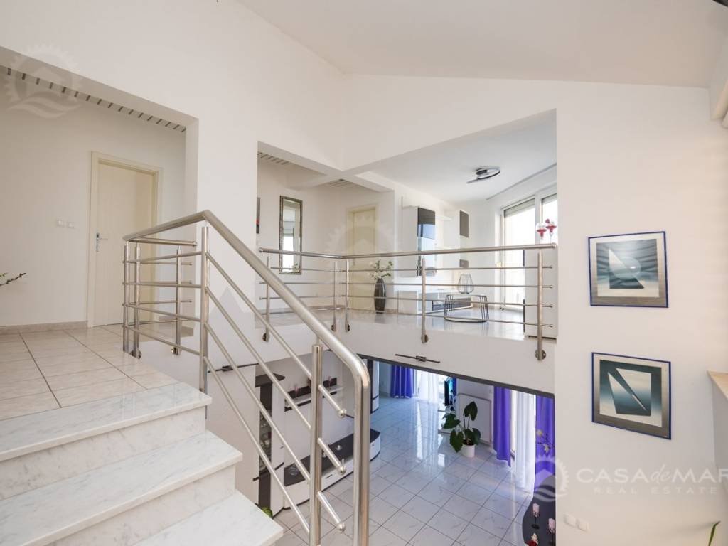 The entire house is very nicely designed and is adorned with a view of the sea from practically every room. The internal stairs lead to the first floor where there are two bedrooms with access to balconies, two bathrooms, a small living room and a spacious hallway and gallery.