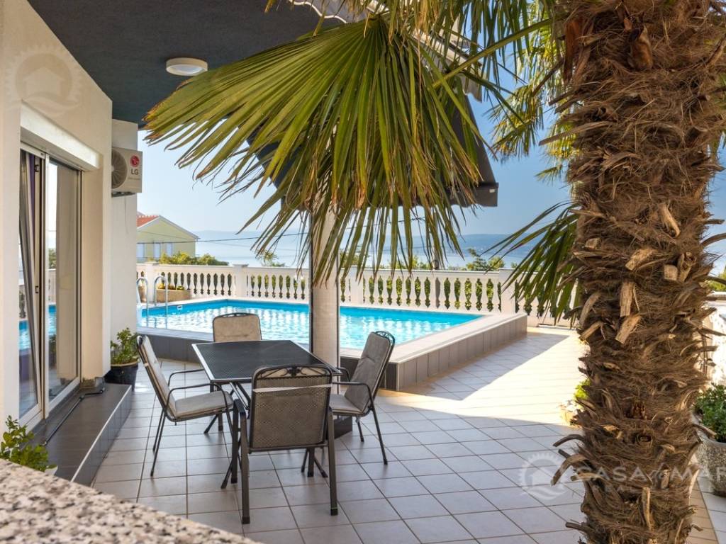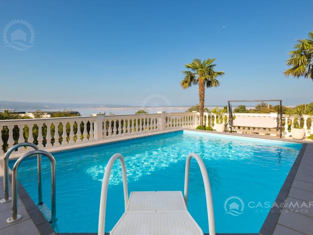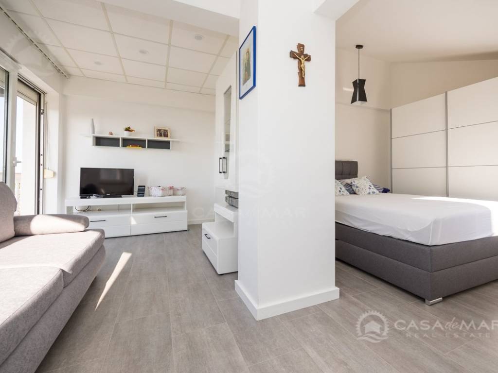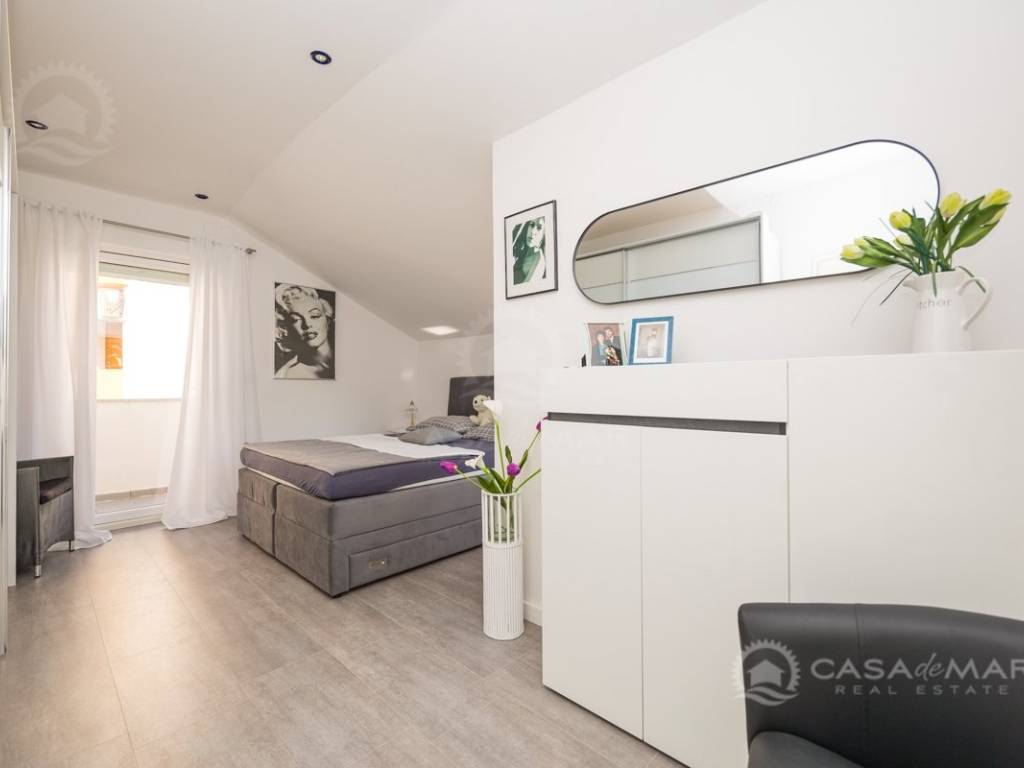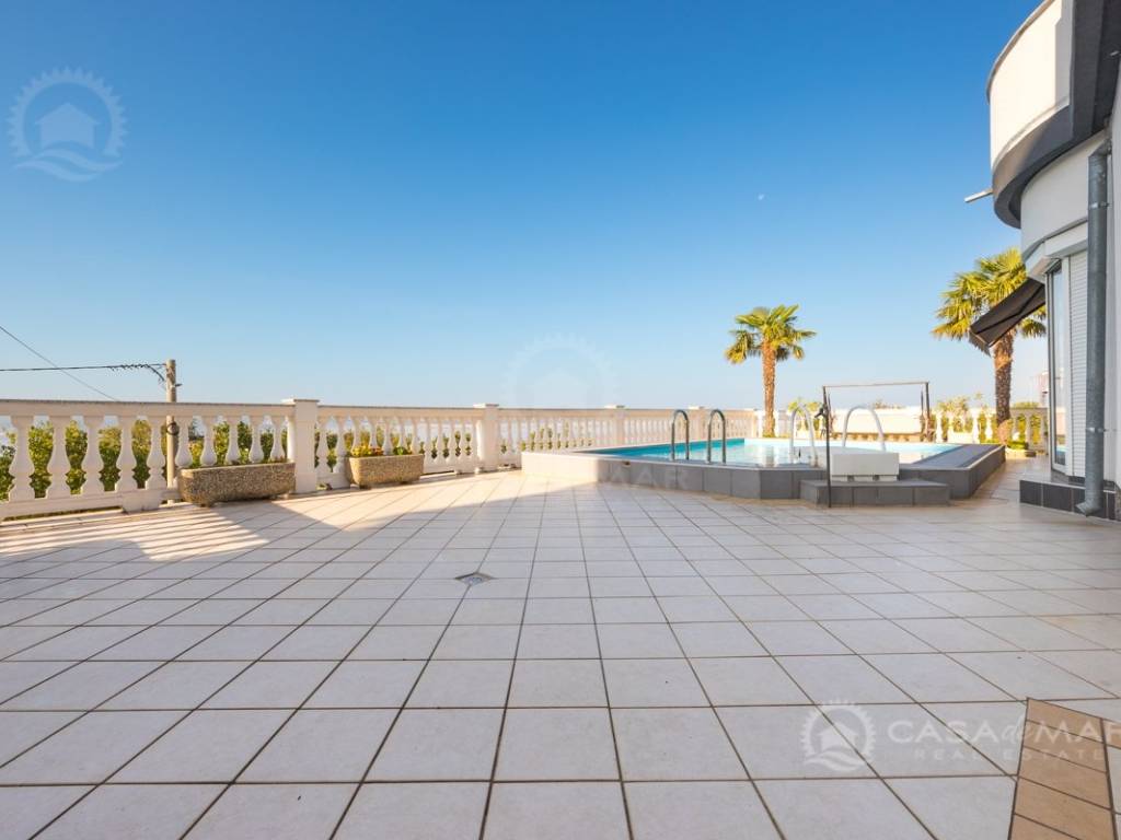The entire house is very nicely designed and is adorned with a view of the sea from practically every room. The internal stairs lead to the first floor where there are two bedrooms with access to balconies, two bathrooms, a small living room and a spacious hallway and gallery.