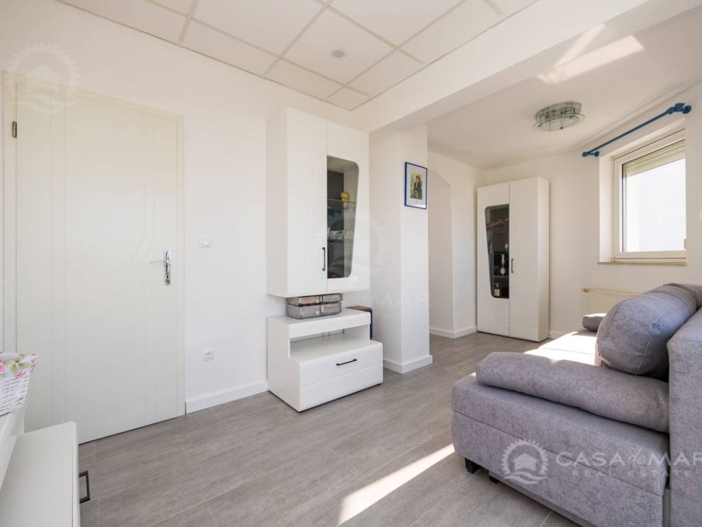 In the basement of the house there are two garages and another studio apartment with a separate entrance. The ground floor consists of one bedroom, bathroom, entrance hall and spacious open space (kitchen, dining room and living room).