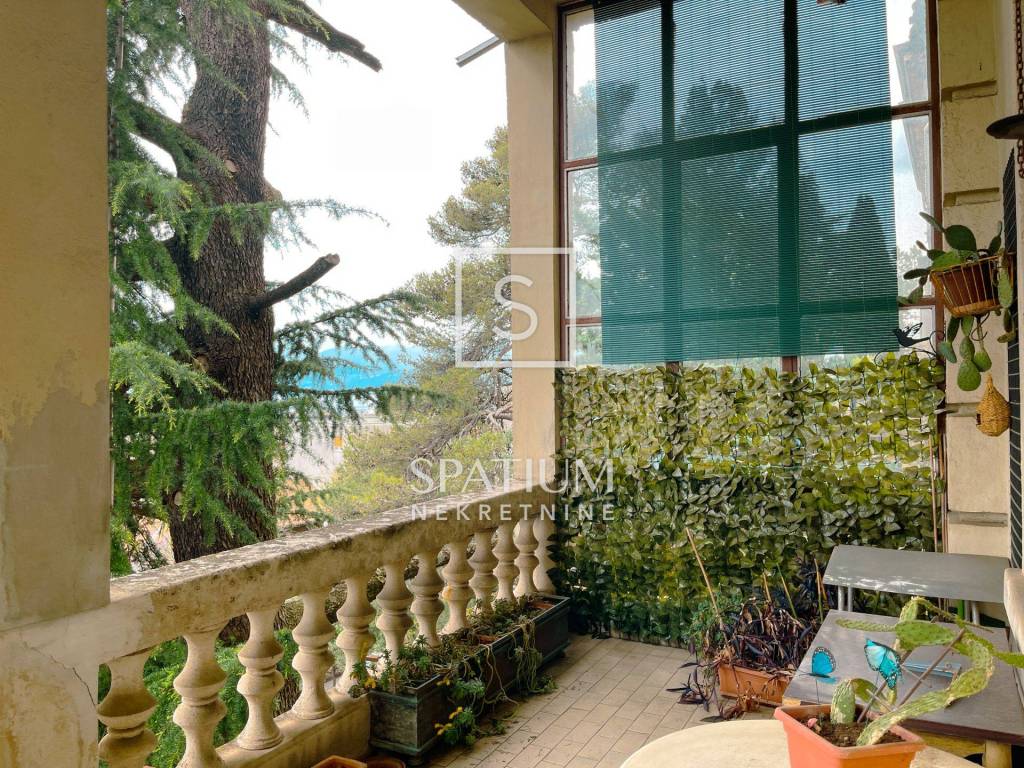 BULEVARD, we have a real estate offer for all history and Sušak lovers. This gentleman's apartment is located in a beautiful villa on the second floor and is 172.37m2 in size. It consists of three bedrooms, living room, kitchen and dining room, bathroom, separate toilet. All this is separated by a corridor where we also have two storage rooms and two balconies and a spacious terrace with a beautiful view of Rijeka and the Kvarner Bay. This property is full of history of Boulevard and Sušak and each part tells its own story. Part of that story is the antique furniture, which can remain in the apartment by agreement.