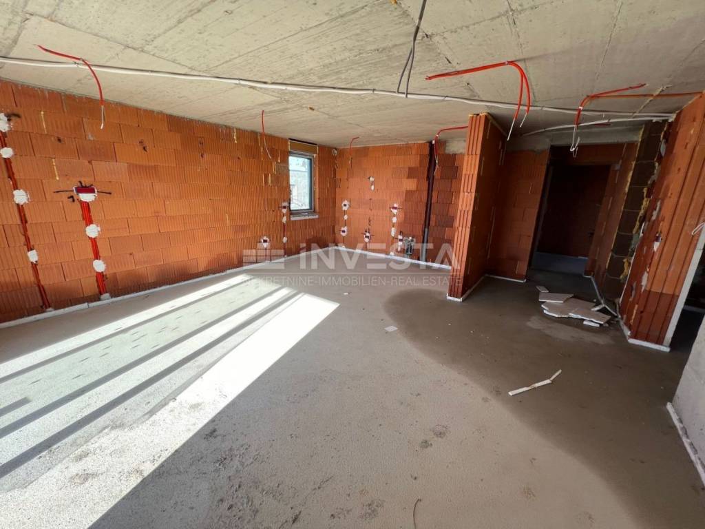 In a quiet part of Medulin, just 300 meters from the sea, a two-bedroom apartment is for sale, located on the second floor of a new building.