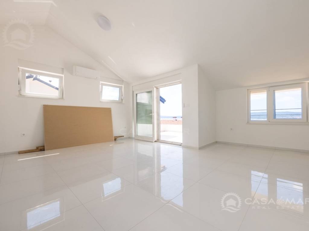 The 98 m2 penthouse is located on the second floor of a new building.