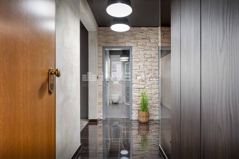 For sale is a newly renovated luxurious apartment located on the first floor of a newer residential building in a quiet location in the suburbs of Pula. It is only 2 km away from the city center.