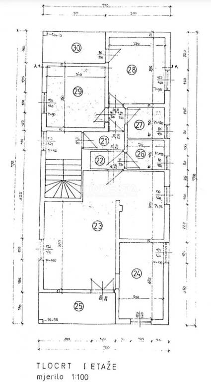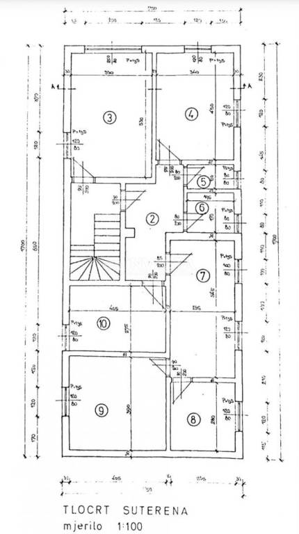 The house has a total gross area of 510 m², dimensions 17 x 7.5 meters, and a net usable area (NKP) of approximately 400 m² distributed across four floors: basement, high ground floor, first floor, and attic. All floors are connected by an internal stone staircase with a wooden railing, adding additional charm and authenticity to this property.