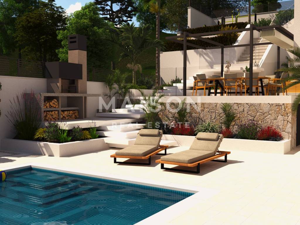 Projekt predviđa arhitekturu koja elegantno spaja suvremene linije i tradicionalne elemente lokalne baštine, stvarajući objekt koji se harmonično uklapa u okoliš, ali istovremeno nudi vrhunsku razinu funkcionalnosti i komfora. Suterenska etaža zamišljena je kao mjesto potpunog opuštanja, s prostorom za wellness i rekreaciju, jacuzzijem i garderobama, te velikom konobom s kuhinjom, roštiljem i prostorom za druženje. Natkriveni parking ima direktan pristup suterenu, dok interno stubište povezuje sve etaže buduće vile.