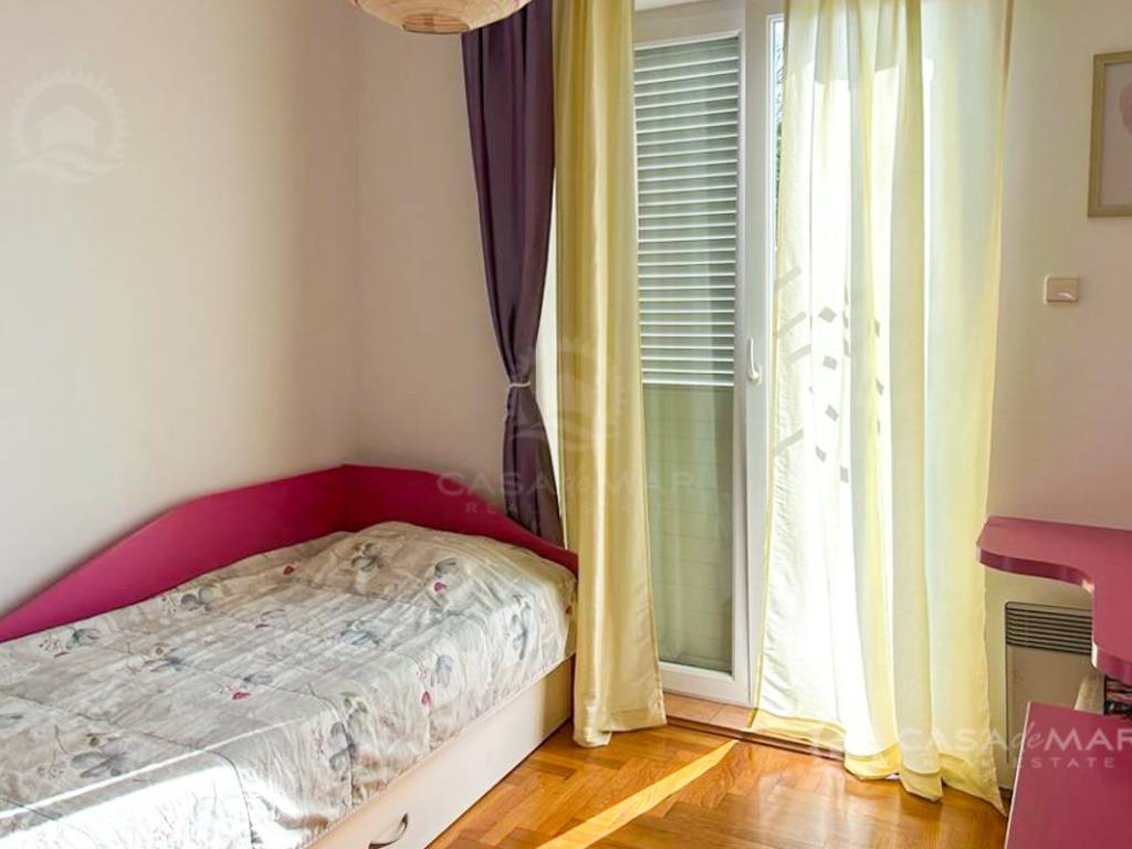 The apartment consists of three bedrooms, bathroom living room + dining room, loggia and a beautifully landscaped garden of 39 m2. The parking lot is not owned, but there are enough parking spaces for all tenants in the garden.