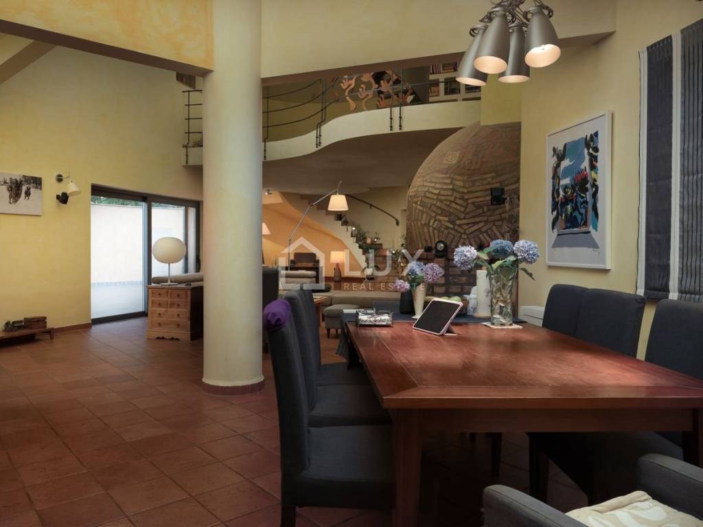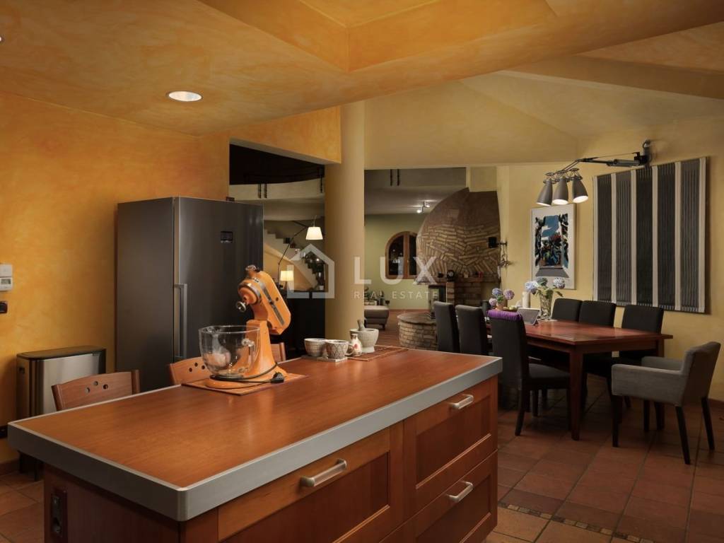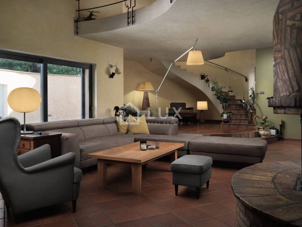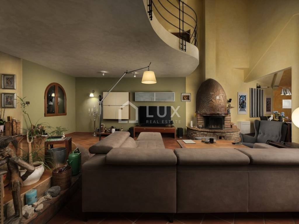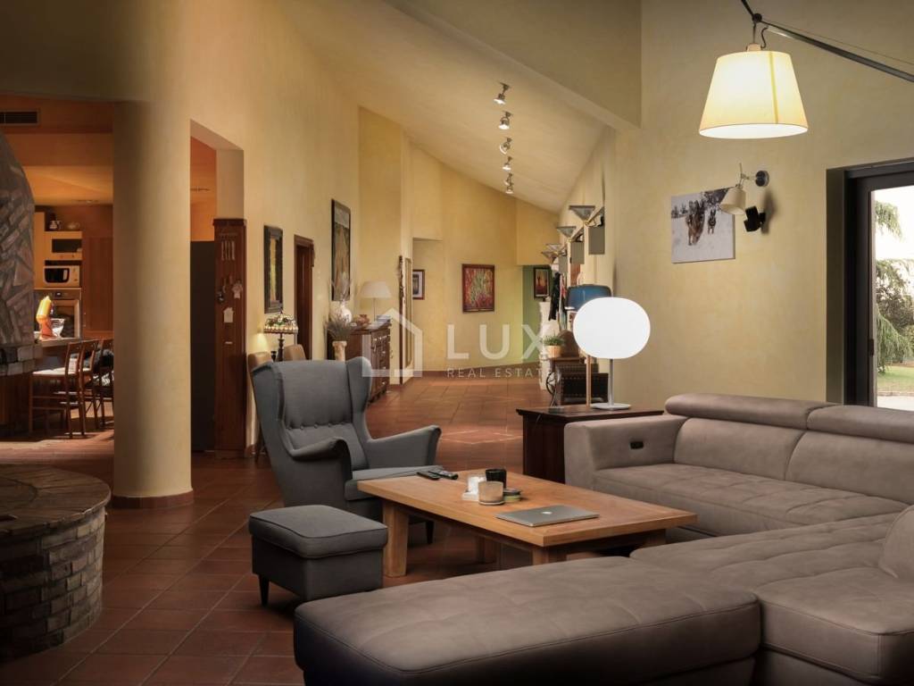 The special features of this villa are the spacious open ground floor and gallery on the first floor, walk-in closet and sauna next to the master bedroom and bathroom, open-space concept created for gatherings, decorative stone fireplace for relaxing evenings with a glass of wine, possibility of additional construction - the entire plot is for construction, a garage with three parking spaces and automatic doors, a summer kitchen for construction, with an attached terrace, an oasis of peace surrounded by greenery and close to the sea (from 7 to 15 km) and a tower with a panoramic view of the entire landscape.
