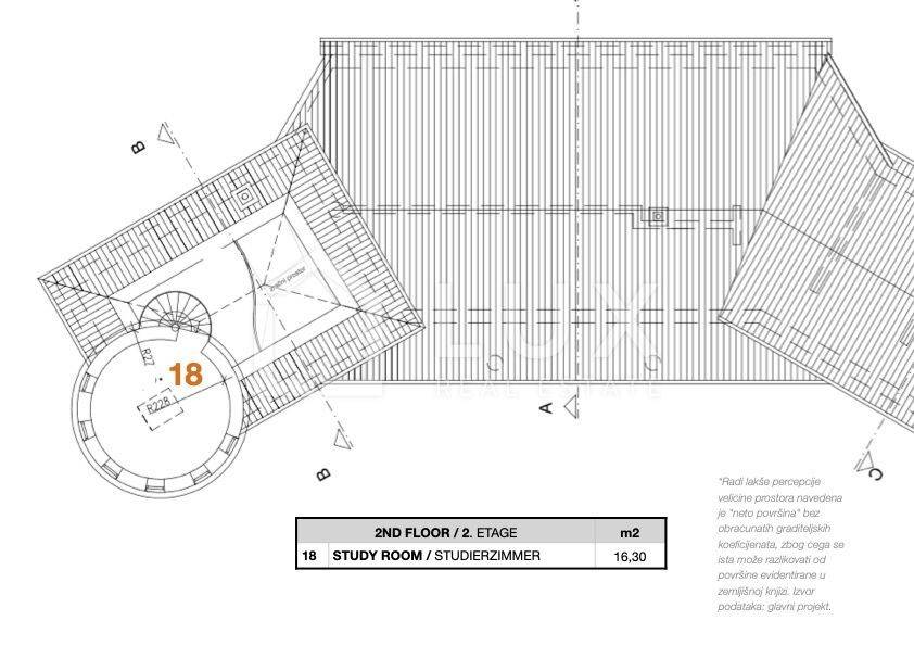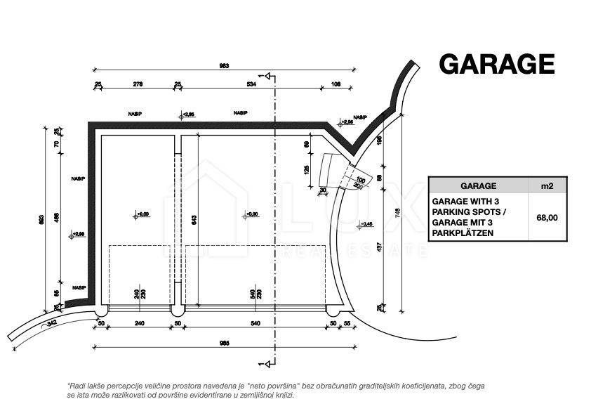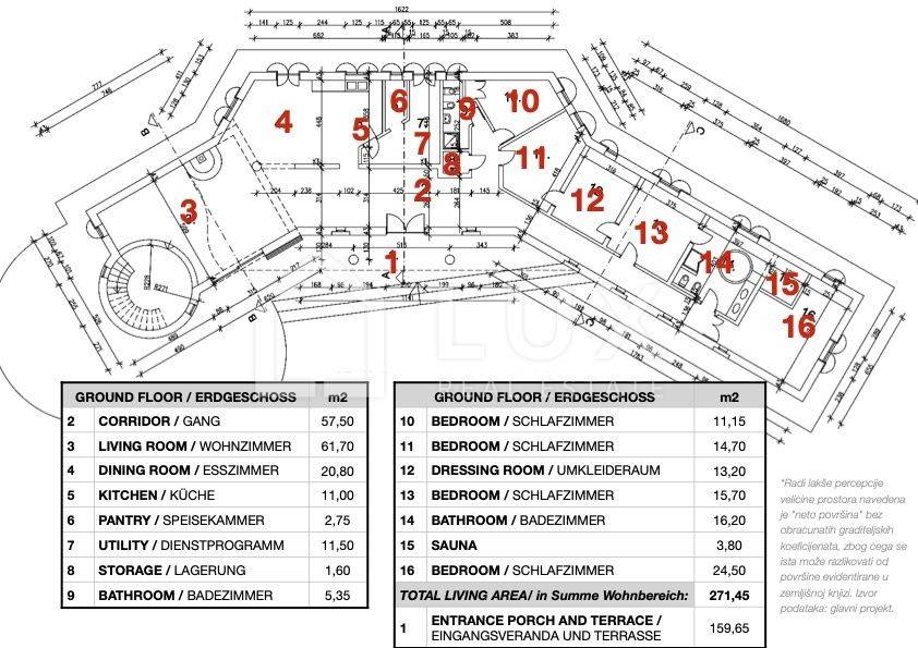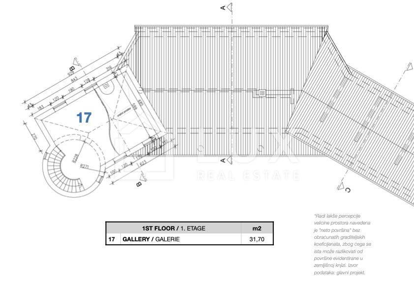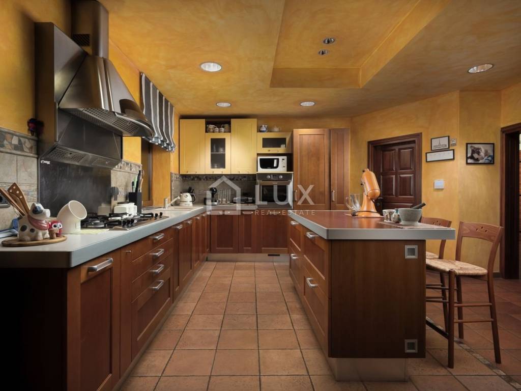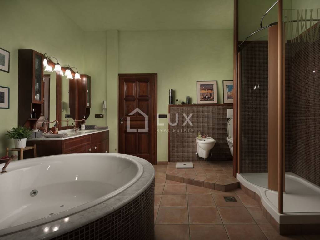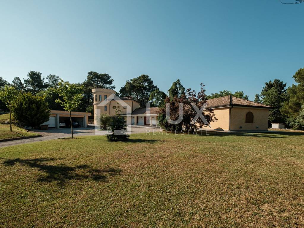 The special features of this villa are the spacious open ground floor and gallery on the first floor, walk-in closet and sauna next to the master bedroom and bathroom, open-space concept created for gatherings, decorative stone fireplace for relaxing evenings with a glass of wine, possibility of additional construction - the entire plot is for construction, a garage with three parking spaces and automatic doors, a summer kitchen for construction, with an attached terrace, an oasis of peace surrounded by greenery and close to the sea (from 7 to 15 km) and a tower with a panoramic view of the entire landscape.