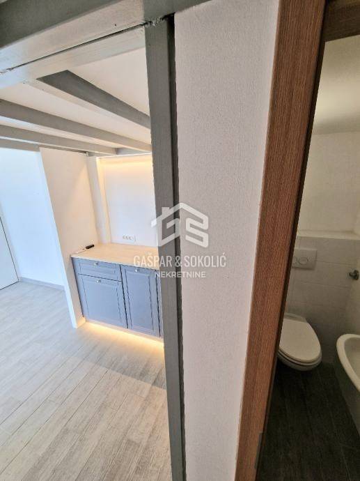 U prizemlju se nalazi sanitarni čvor, kuhinja te stubište ispod kojeg je smještena manja ostava, pogodna za odlaganje opreme ili potrošnog materijala. Galerijski dio čini otvoreni prostor s pogledom na donju etažu, u sklopu kojeg se nalazi i uredski dio, što prostoru daje dodatnu dinamiku i osjećaj prozračnosti.