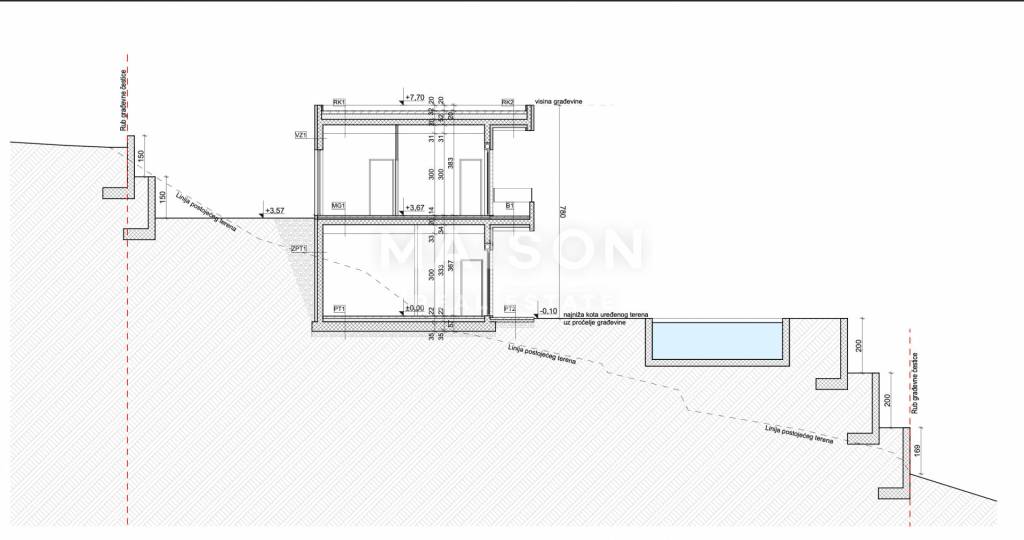 Na prodaju su dvije građevinske parcele veličine 966 m2 i 957 m2, koje već posjeduju izdanu građevinsku dozvolu i detaljan arhitektonski projekt za izgradnju dviju luksuznih vila s bazenima. Ovaj projekt predviđa moderne vile visokog standarda, idealne za ekskluzivan privatni smještaj ili turistički najam na razini 5 zvjezdica.