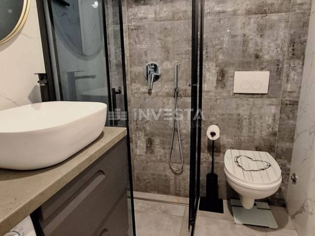 The apartment is located in an older building and was completely renovated in 2018. It consists of an entrance hallway, a bathroom, one bedroom, and a living area with a dining room. The apartment is heated and cooled by an air conditioning unit. This modernly furnished apartment is sold fully equipped, making it an ideal opportunity for clients looking for a smaller apartment near the center and the sea.