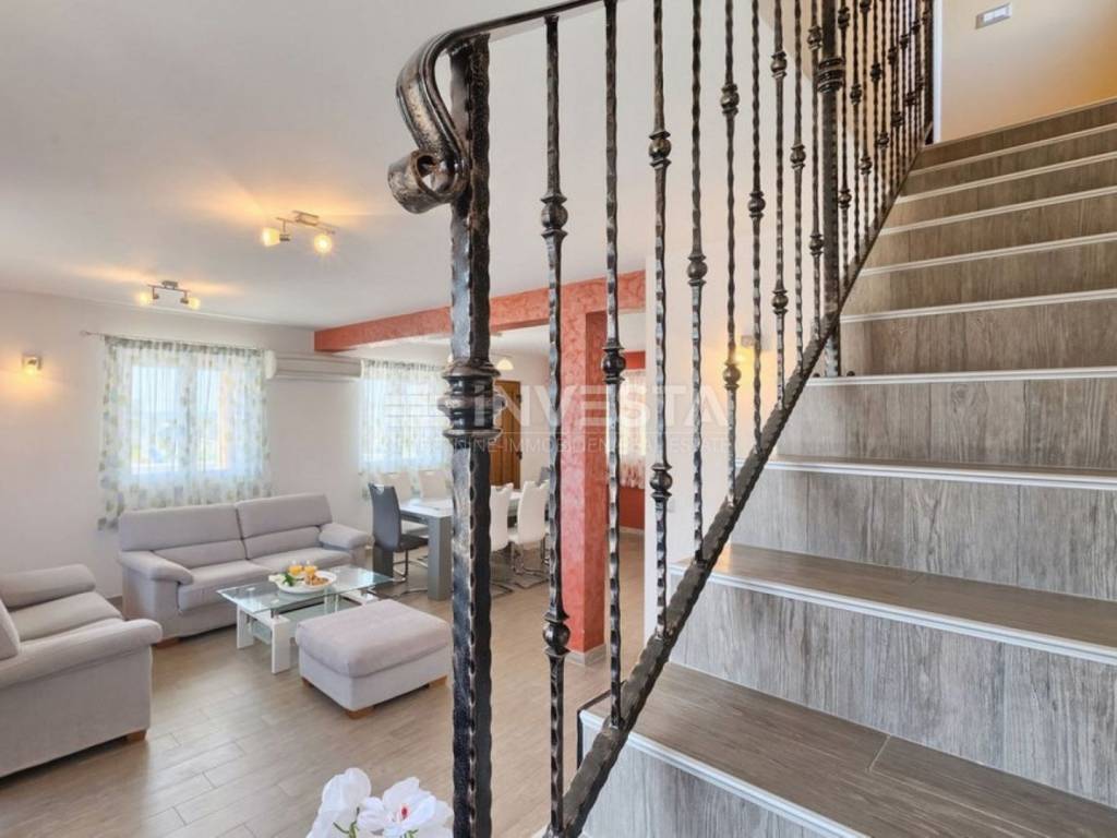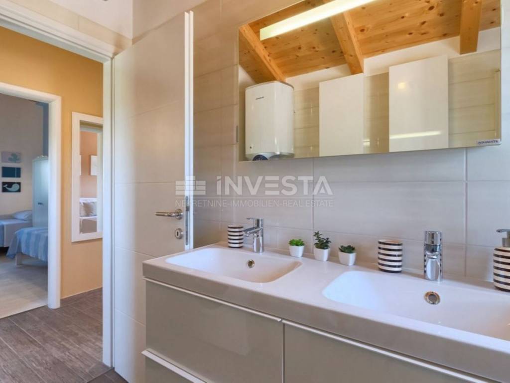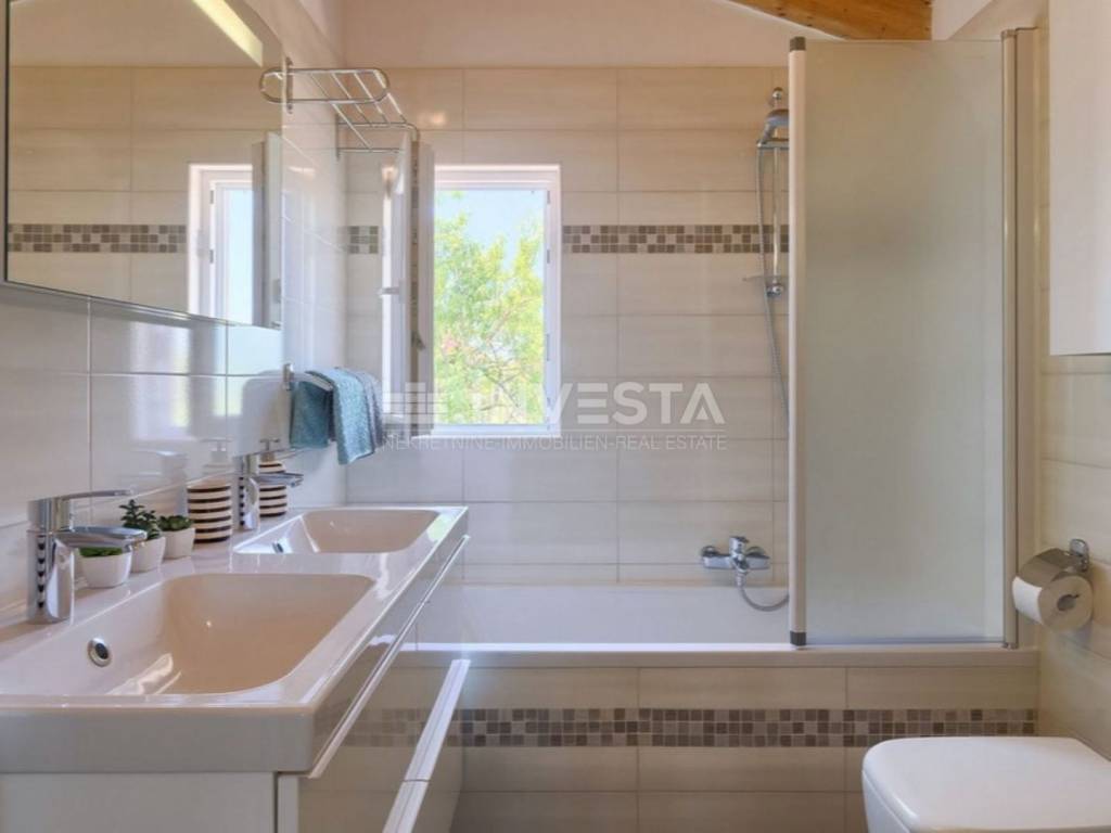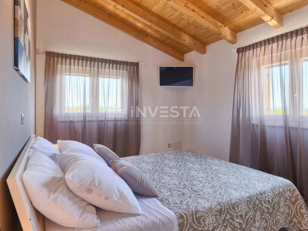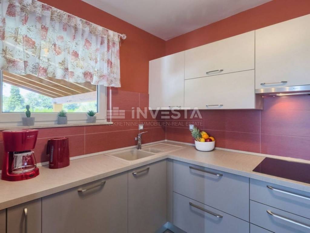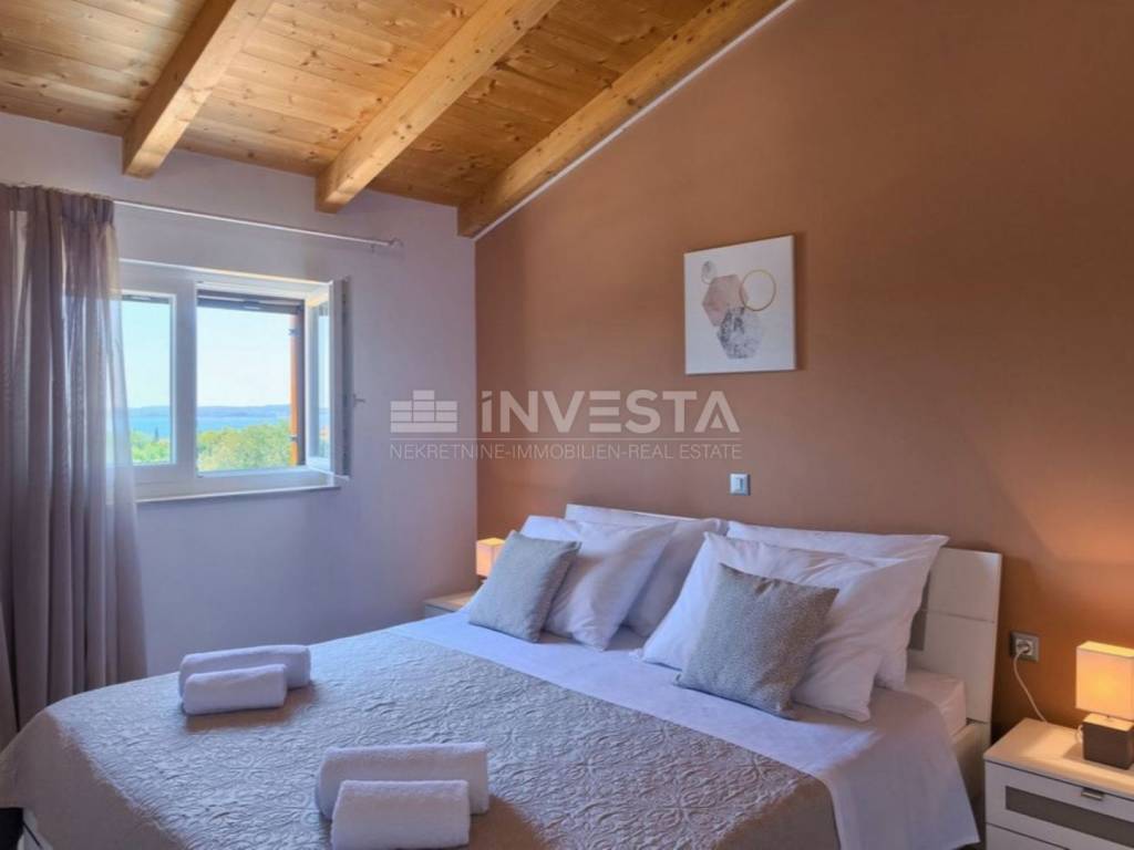 This beautiful villa is located in a peaceful area and spans 180m², with a spacious yard of 2237m². The property offers a magnificent view of the sea and the Brijuni Islands. It is heated by wood and air conditioners. The facade is thermally insulated with an 8 cm thick layer of insulation, which ensures significant energy savings. The windows are equipped with PVC frames and high-quality ALU shutters. The floors are covered with high-quality parquet and tiles. The yard is fully enclosed with a stone wall, and there is an outdoor barbecue. For additional security, the property is equipped with an alarm system.
