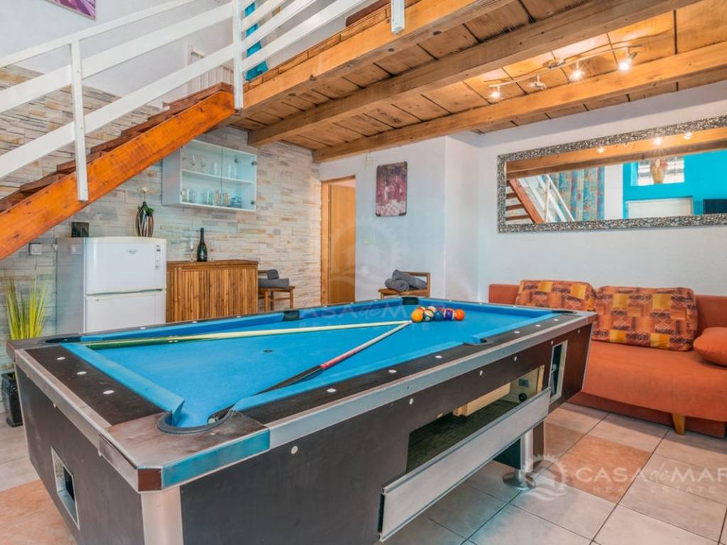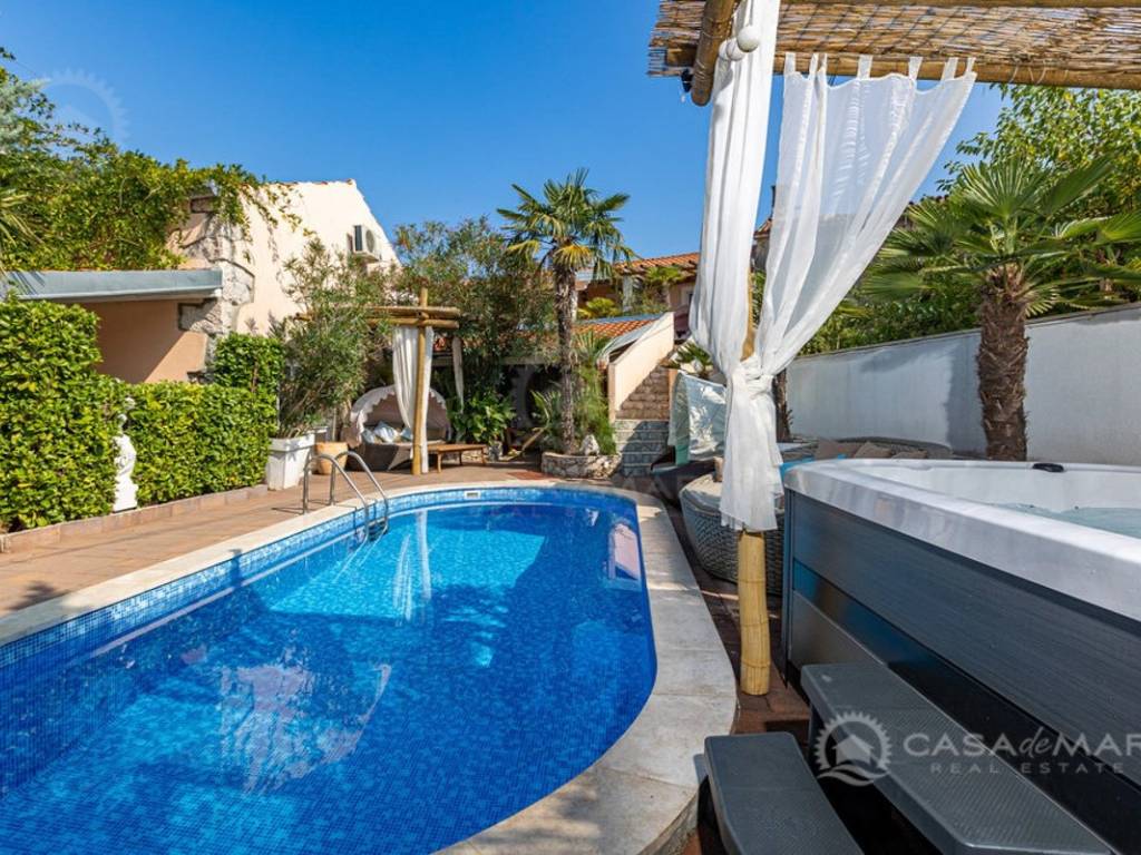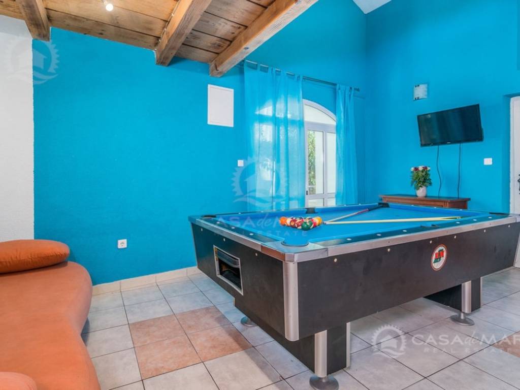 The interior and exterior spaces are designed with special attention to comfort and functionality. The outdoor area includes a heated pool, jacuzzi, sun deck, and barbecue – a perfect space for relaxation and socializing. A special added value is the additional space equipped with a billiard table, private bathroom, and gallery bedroom, which can also serve as a separate studio apartment.