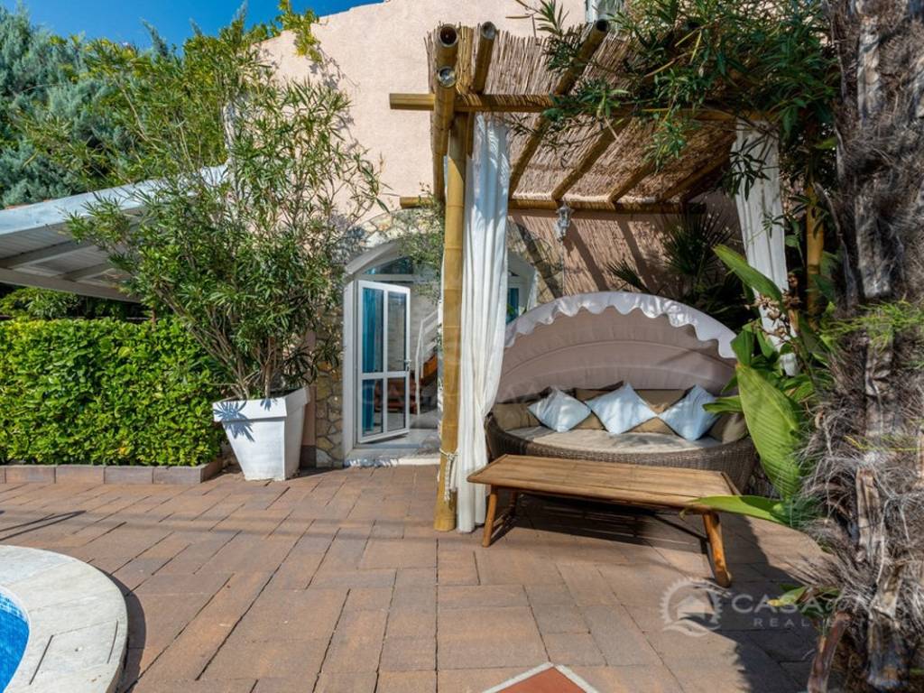 The house was originally built in 1950 and thoroughly renovated in 2008. It features PVC windows, air conditioning, and is being sold fully furnished. Three parking spaces are available. The location provides peace and privacy while maintaining good access to nearby beaches and amenities.