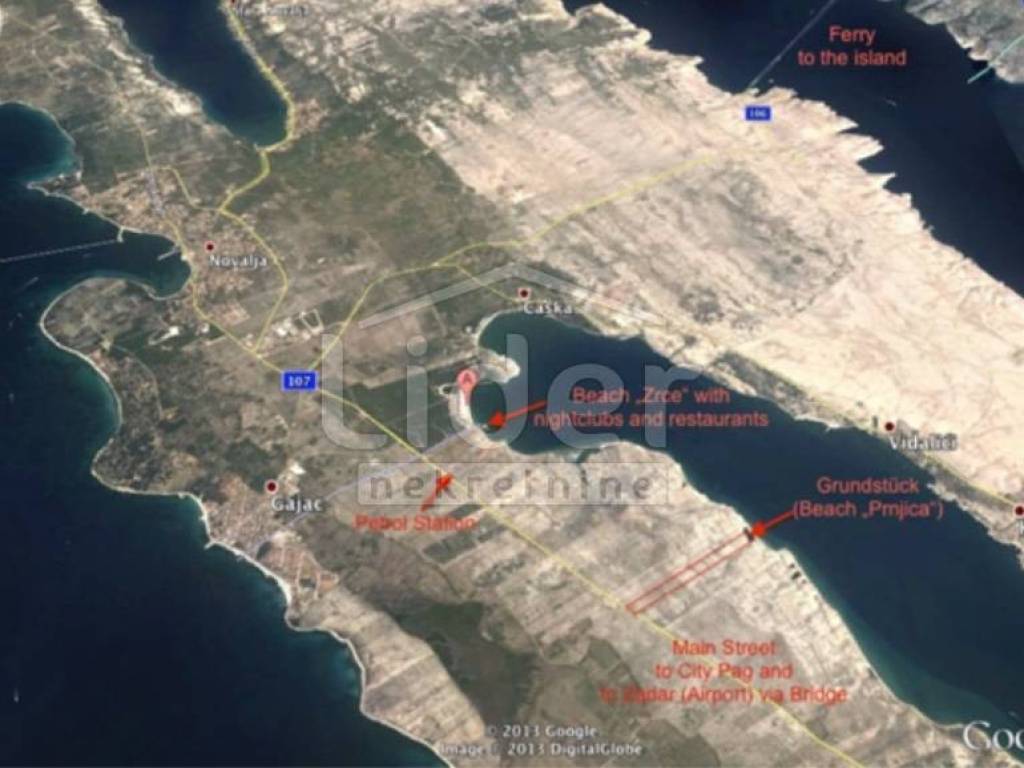 Površine je 134.803 m2, ali je moguća kupnja i manjih parcela. Proteže se od ceste za Novalju do samog mora, odnosno pješčane plaže Prnjica. Ispod samog terena nalazi se prekrasna pješčana plaža imena Prnjica. Na samom terenu je i izvor slatke vode koji je na otocima rijetkost te kao takav predstavlja prirodni fenomen te pruža dodatnu mogućnost komercijalizacije...