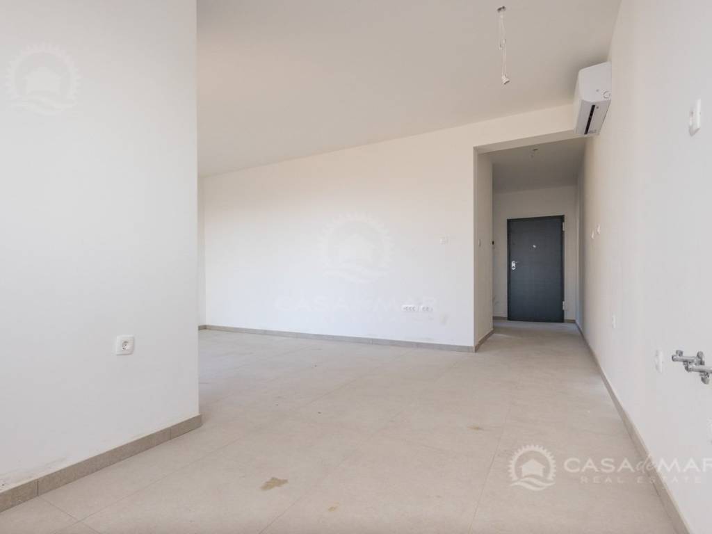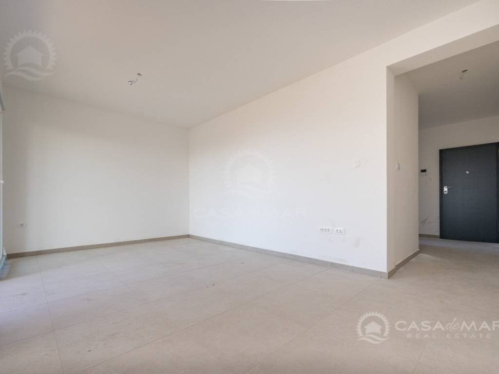 The apartment has a total area of 54 m² and is situated on the ground floor of the new building. The layout is functional and contemporary, featuring a spacious open-space living room connected to the kitchen and dining area. From the living area, there is access to a covered terrace offering a sea view – a rare feature for ground-floor apartments and a distinctive advantage of this property.