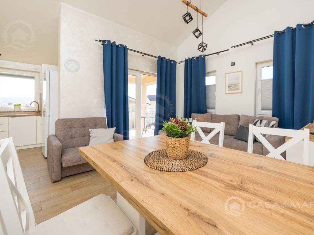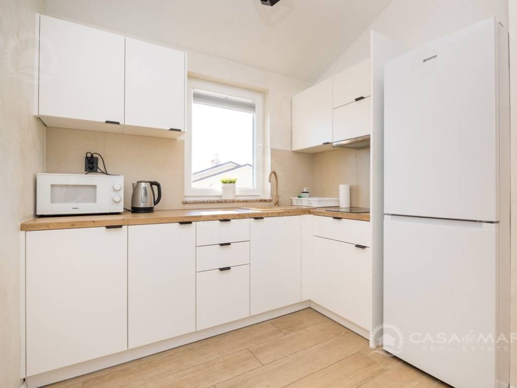 The apartment was renovated in 2021 and is equipped with PVC joinery and air-conditioning. An additional feature is the chimney, which allows heating with a wood or pellet stove, making the apartment suitable for year-round use.