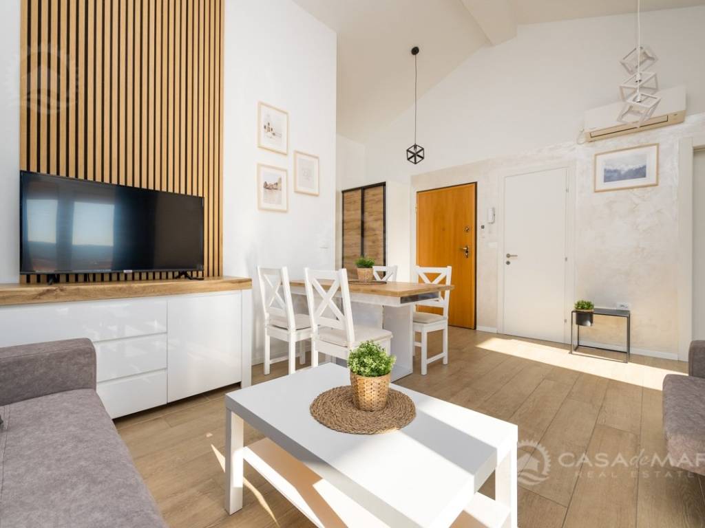 For sale is an attractive and stylishly decorated apartment in Uvala Soline, located in a peaceful area, just 400 metres from the sea and well-maintained beaches. The apartment was carefully renovated and decorated with style, emphasizing functionality and a pleasant Mediterranean atmosphere, making it an excellent opportunity to purchase a fully furnished property, ready for immediate move-in or tourist rental without additional investment.