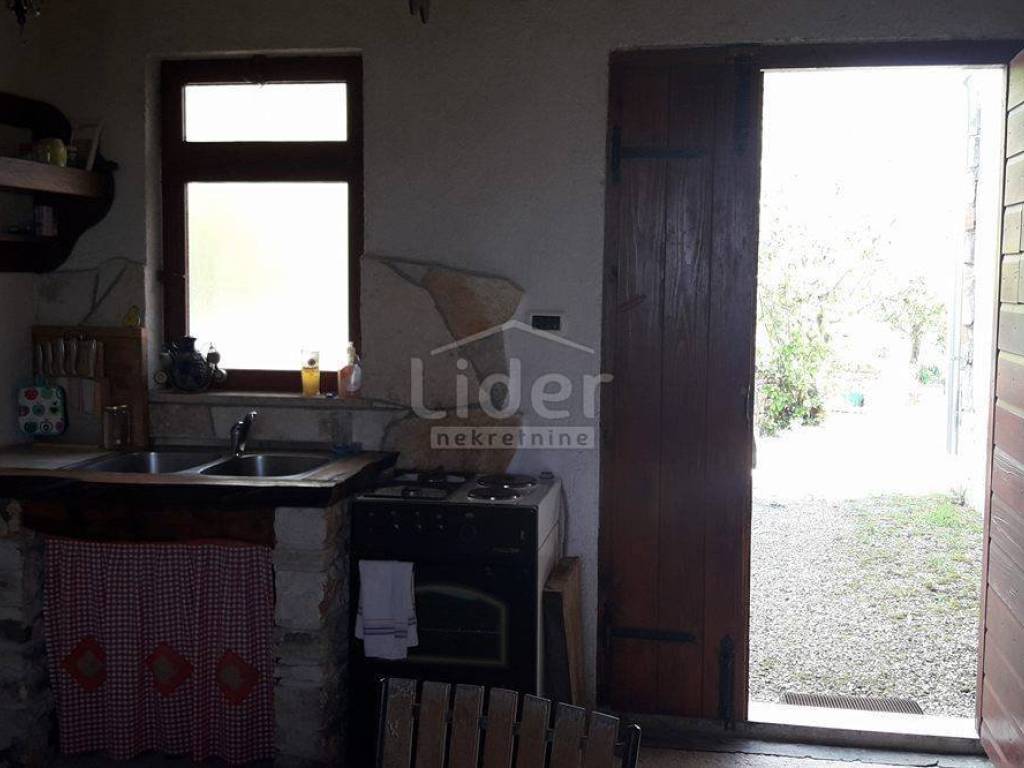 We are selling a detached house with a large garden in the area of Kanfanar, which consists of a ground floor and an attic.