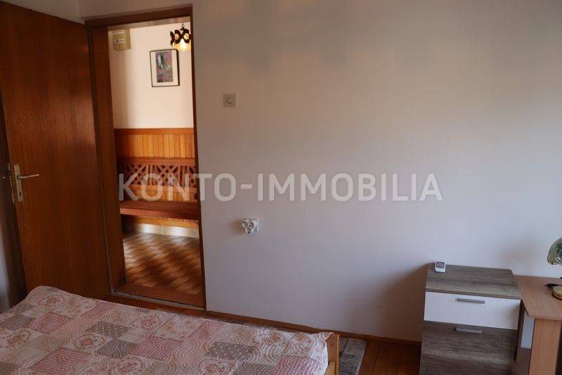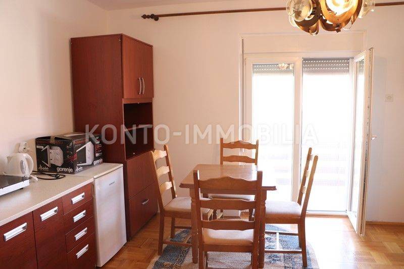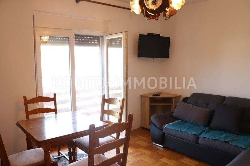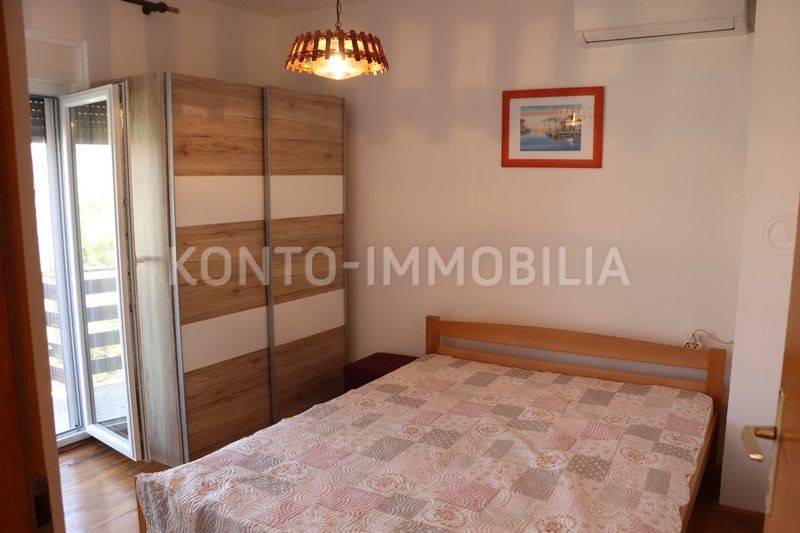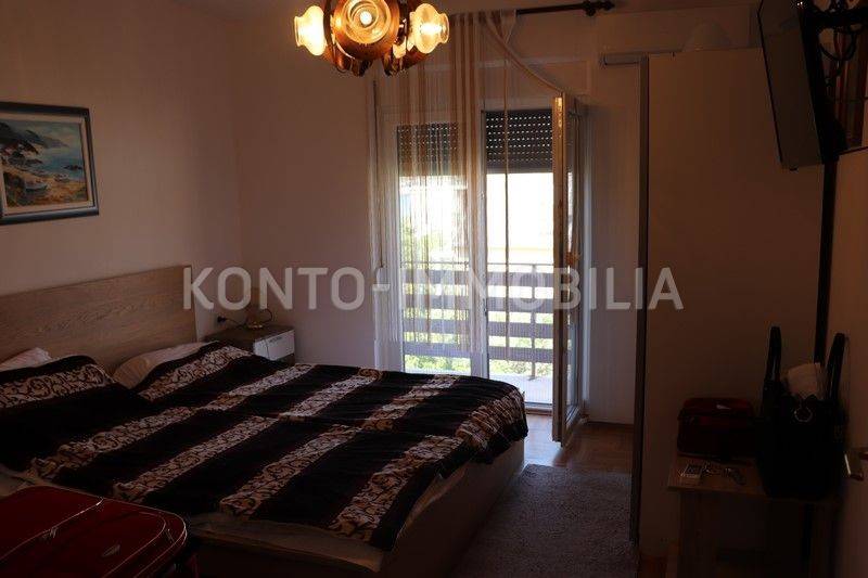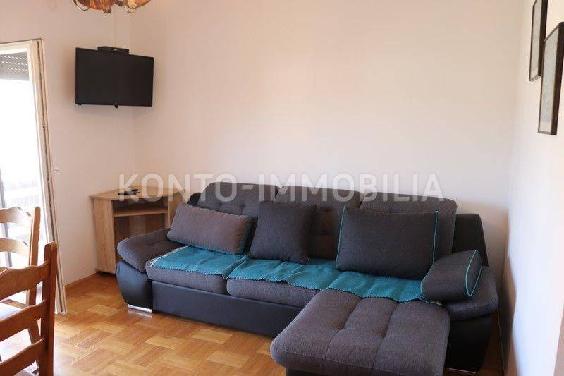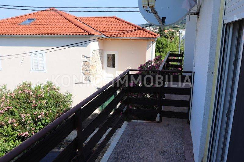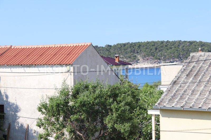 A small family house with three apartments, a garden, in a great location and close to the sea. There is a large three-bedroom apartment on the ground floor, while on the first floor there are two one-bedroom apartments with a spacious common terrace. The house is furnished, and the apartments on the first floor are air-conditioned. There is also a garage on the ground floor, which can also be arranged as a living space. The house is habitable, but it requires additional renovation.