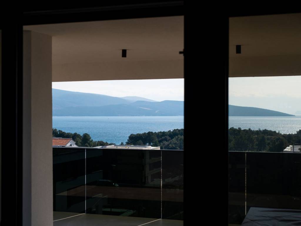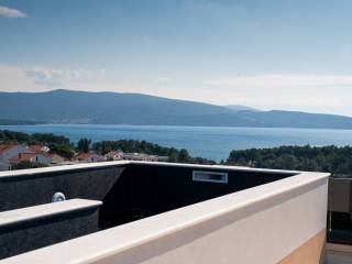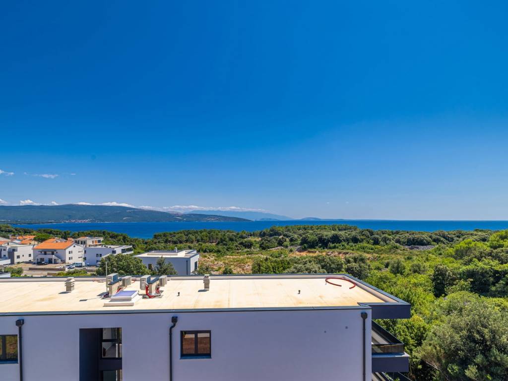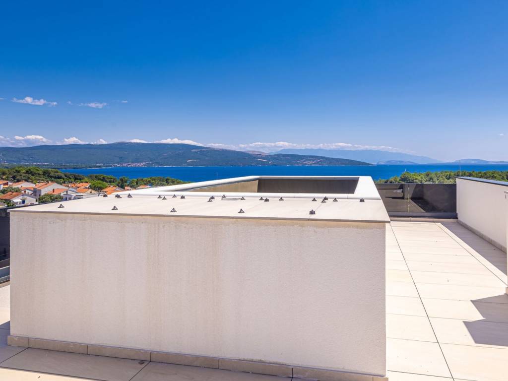 In an attractive location in the town of Krk, just 600 meters from the sea, there is a luxurious two-story apartment that combines top-notch comfort, elegant design and panoramic sea views. With a total net area of 167 m², with a total gross area of approximately 270 m², the apartment extends across the first and second floors of a modern building with four residential units. The first floor has three airy bedrooms, one of which has an en suite bathroom, and all rooms have direct access to a spacious 29 m² balcony. There is also an additional bathroom on the same floor, which ensures a high degree of functionality in everyday use. On the second floor there is a modern open space area that connects the kitchen, dining room and living room. A large glass wall allows for plenty of natural light and access to a 25 m² terrace with an open sea view. From this area, an external staircase leads to an exclusive roof terrace of approximately 55 m², where a private pool of approximately 16 m² is located, ideal for relaxing and enjoying sunsets. The apartment comes with two parking spaces, and the entire building was built with an emphasis on quality. Aluminum joinery, multi-layer parquet, first-class sanitary facilities and wooden doors have been installed. Heating and cooling are provided by a heat pump with underfloor heating and additional air conditioning. This property is an excellent opportunity for buyers looking for a luxurious apartment near the sea, with private amenities and a balanced combination of comfort and elegance. For additional information or to arrange a viewing, we are at your disposal.