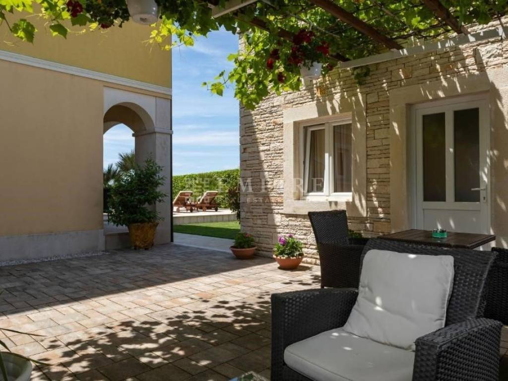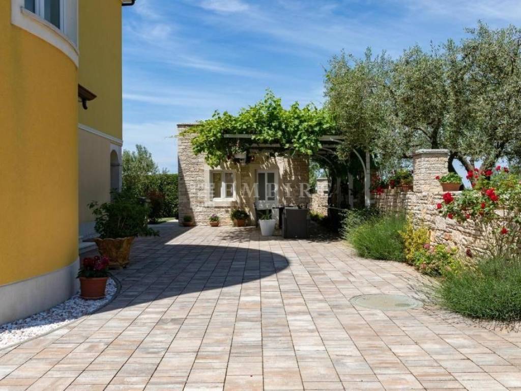 The spacious dining area with access to a covered terrace allows you to enjoy every meal with a beautiful view of the property. Speaking of the property, it features an impressive 80 m² pool – the perfect place for refreshment and relaxation under the Istrian sun.