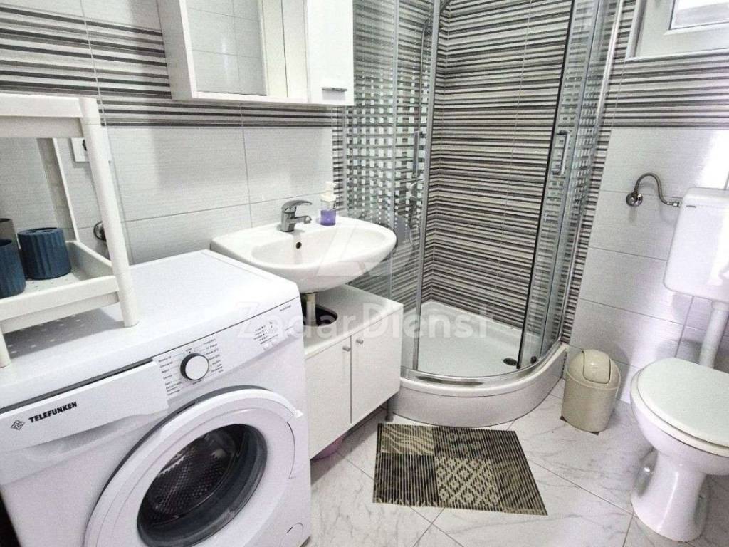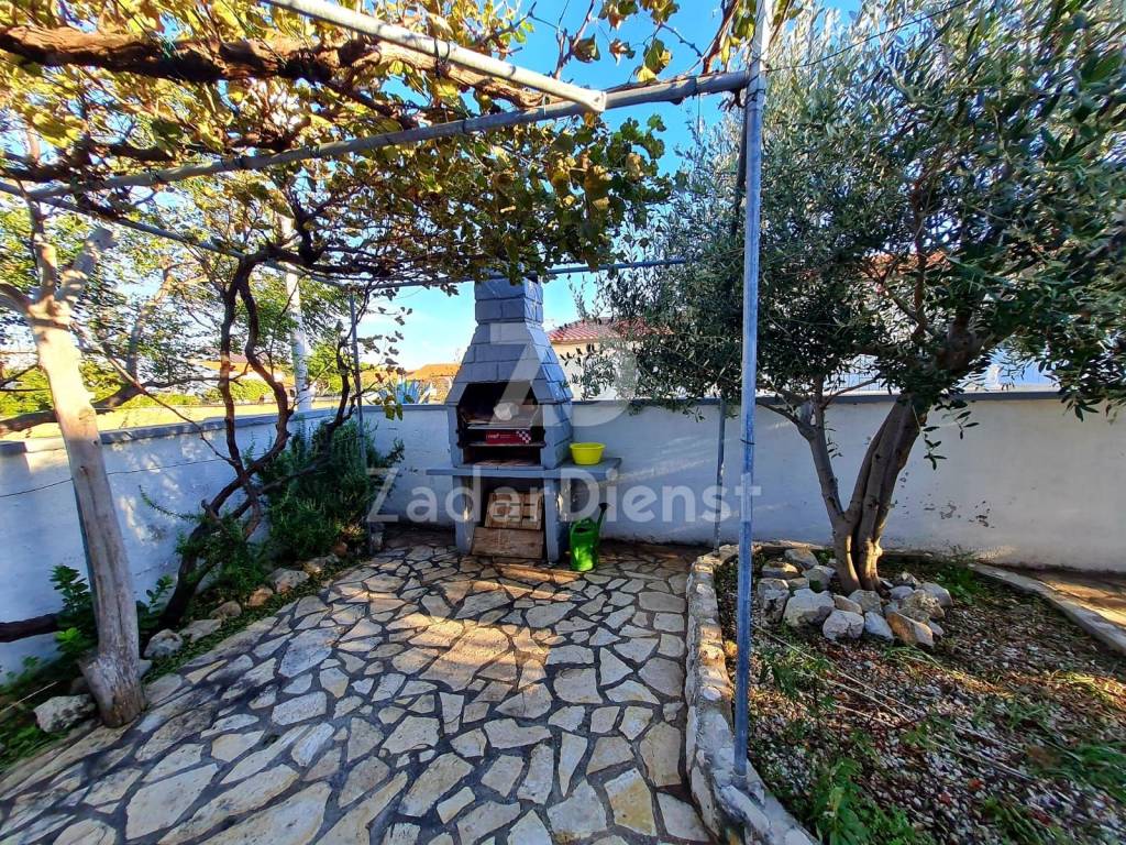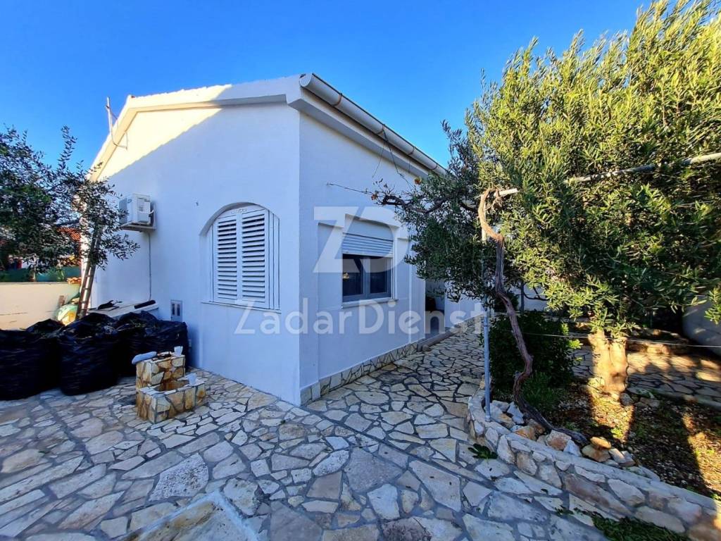A single-storey house with 2 residential units is for sale, on a plot of 270 m2 located near the sea and a beautiful beach. The house consists of a kitchen, dining room and living room, 3 bedrooms, 2 bathrooms, a utility room and an additional studio apartment. The property also features a spacious covered terrace and a landscaped garden with an outdoor barbecue and 3 parking spaces. The house is decorated, fully equipped and ready to move in immediately. PVC joinery and a chimney are installed, so there is a possibility of heating with solid fuels. The distance to the supermarket is 50 m and a cafe bar and restaurant are within 150 m. The center of Vir is approx. 1 km away, and the city of Zadar is approx. 25 km away. Ownership is neat 1/1.