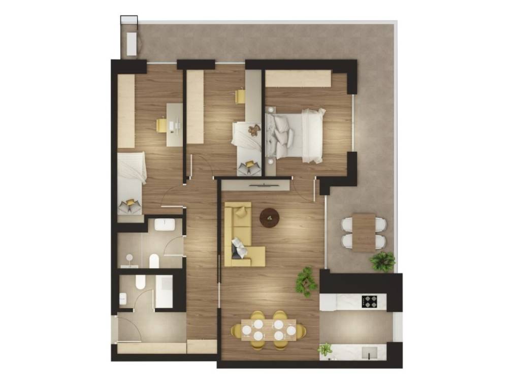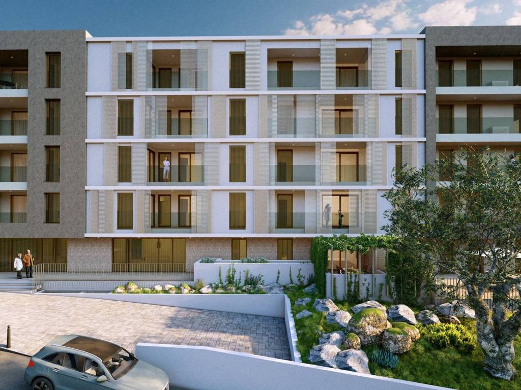 Apartment 2.4 is located on the fourth floor and offers a thoughtful layout that allows for a comfortable and functional life. Upon entering the apartment, the hallway leads you to the spacious living room that naturally continues into the kitchen and dining room. This open living space is bathed in light thanks to large glass surfaces and access to an exceptionally spacious loggia, perfect for spending time outdoors. The private part of the apartment features three bedrooms. The main bathroom and an additional toilet provide greater practicality and comfort, especially for families. The presence of a wardrobe and a functional storage room allow for better organization of everyday life and additional storage space. The apartment has two garage spaces located in the basement of the building, as well as an associated storage room. The project consists of 40 apartments spread over five above-ground floors and four business spaces on the ground floor. The building is fully completed, the apartments are divided into condominiums, and purchase is possible with a loan. Each apartment has a storage room in the basement and at least one garage space. The project includes a total of 75 garage spaces. The location in Zamet offers proximity to schools, kindergartens, markets, beaches, shops and sports facilities, and is only a fifteen-minute drive from the center of Rijeka or Opatija. The apartments have a modern design, with attached loggias, terraces or gardens, adapted to a modern lifestyle.