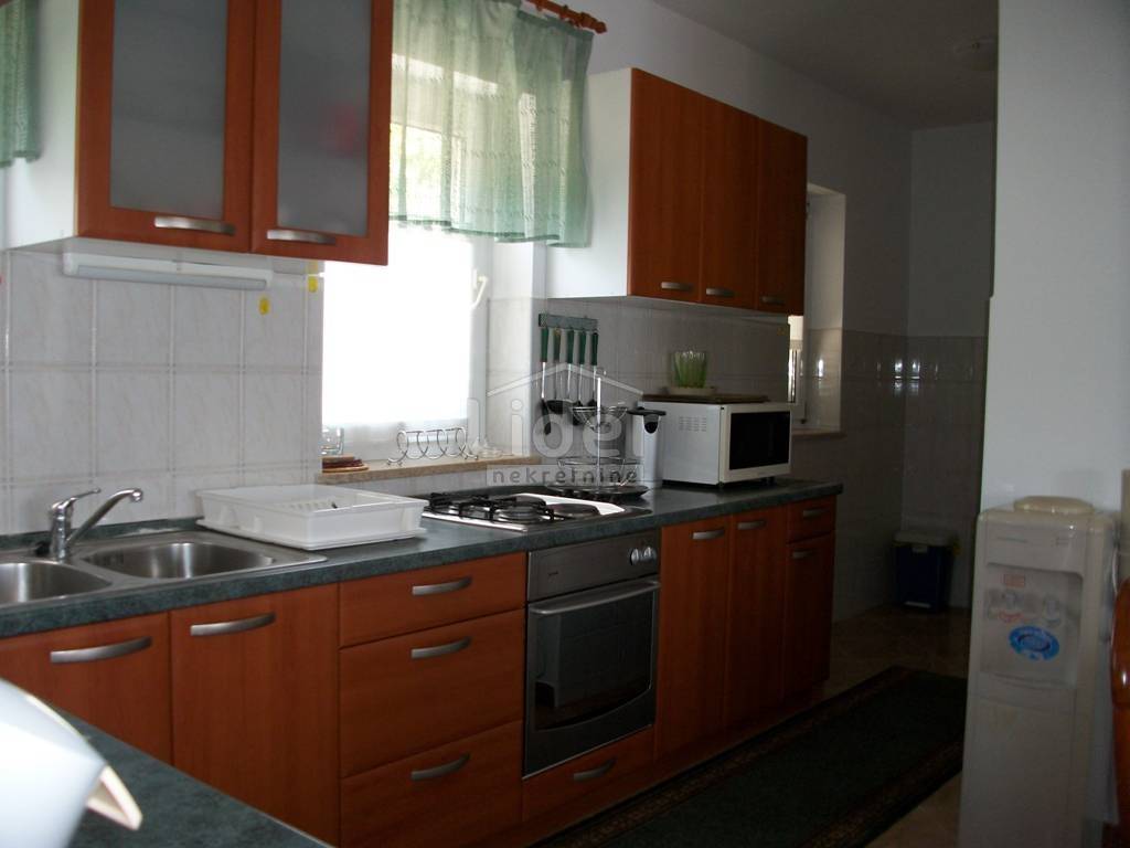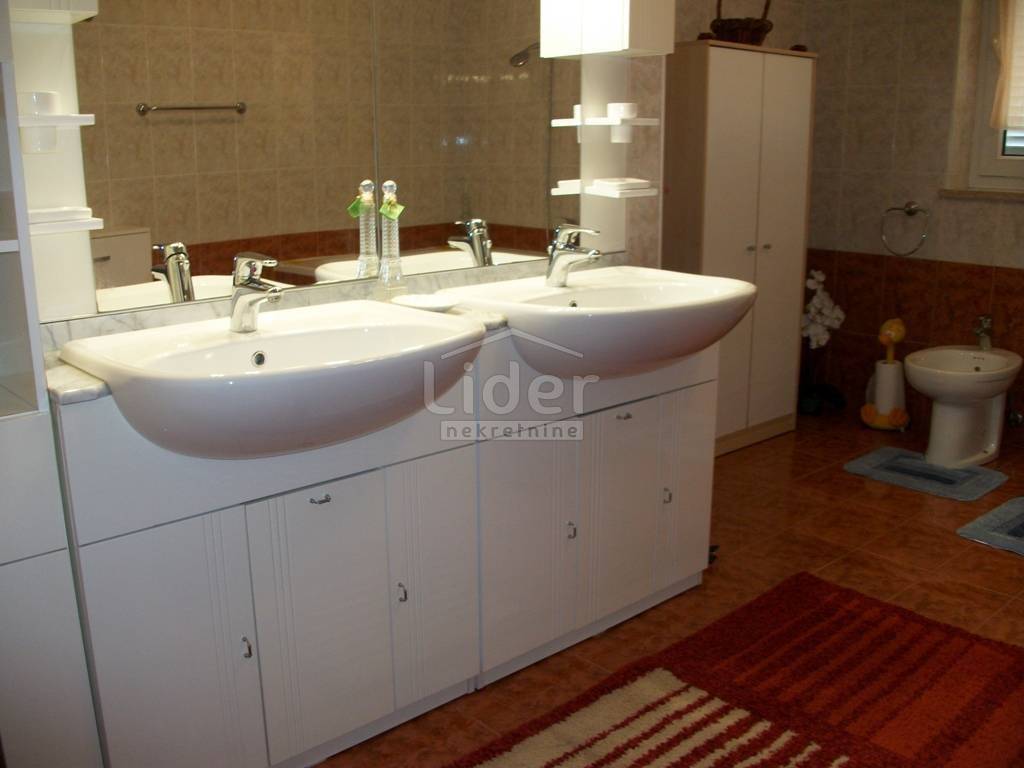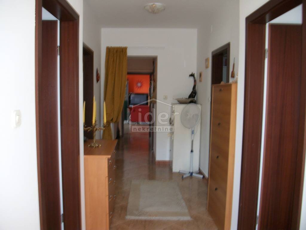 Spacious apartment of 240m2, which is conceived in two parts: LIVING PART: Spacious living room with home cinema quality furnishings (leather sets) large balcony with open sea view, open space which is complemented by dining room and kitchen. Workroom and small bathroom with toilet. PRIVATE-SPACE PART: 4 spacious bedrooms,balcony to the east, large bathroom with corner bath and two separate wash basins. Proper environment (palm trees, quality landscaped gardens). An open view of the entire Adriatic sea. More parking spaces. Rarity in offer.Long term rentals are preferred For all other information: 00385976242406 Gordana Rabak