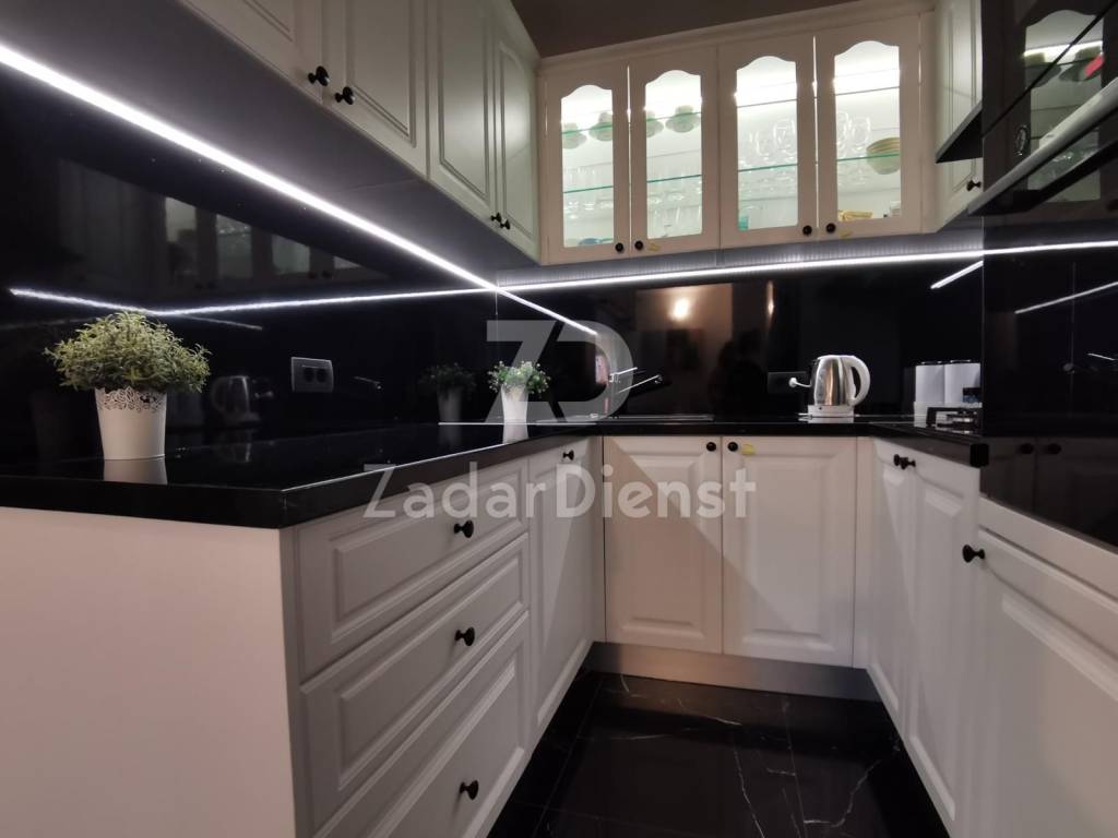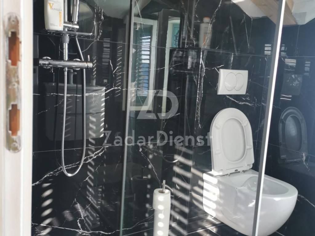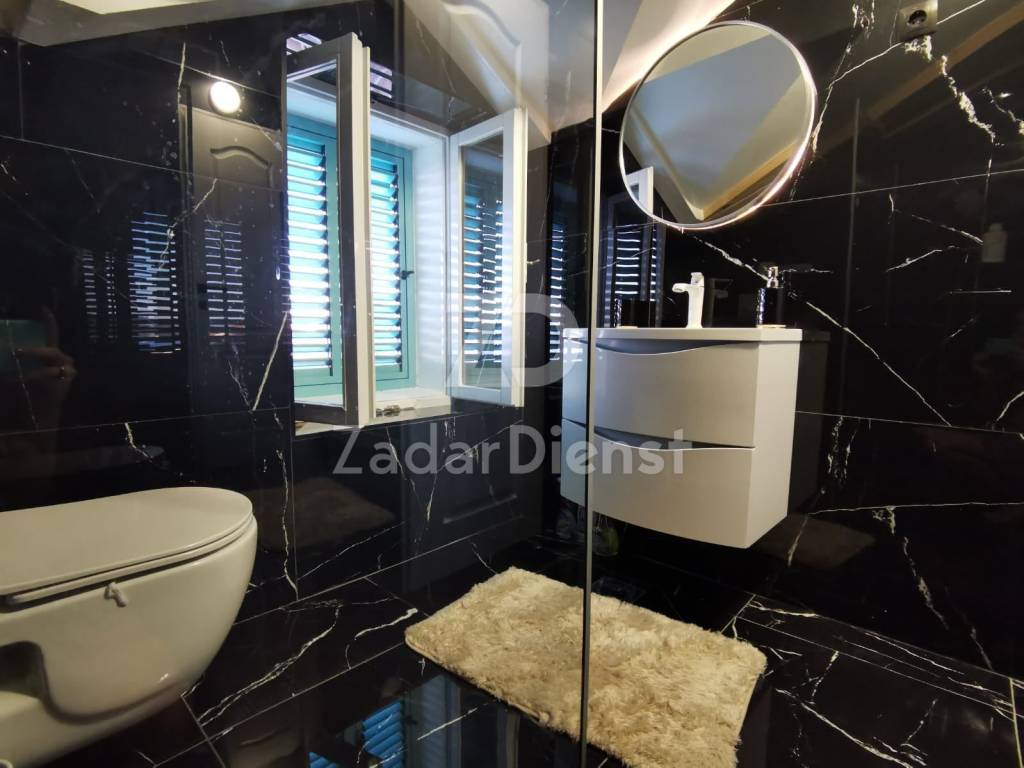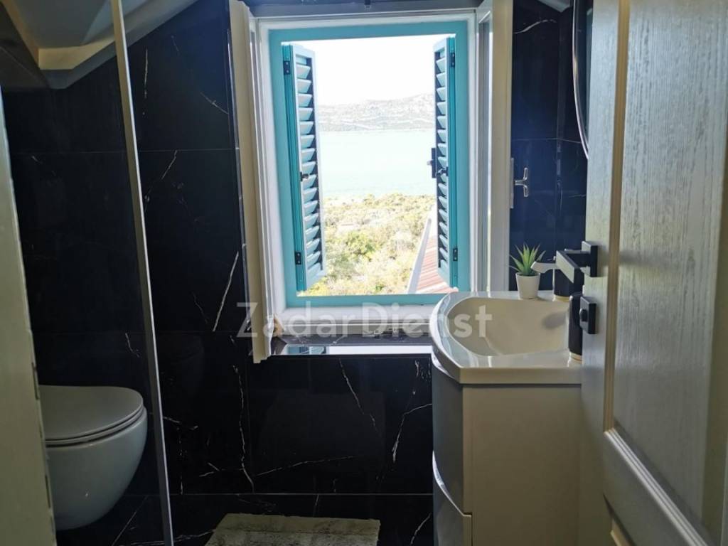 The house is designed on three floors (each 83 m2) and a covered terrace of 30 m2 which offers the most beautiful view of the sea and the Zadar archipelago.
