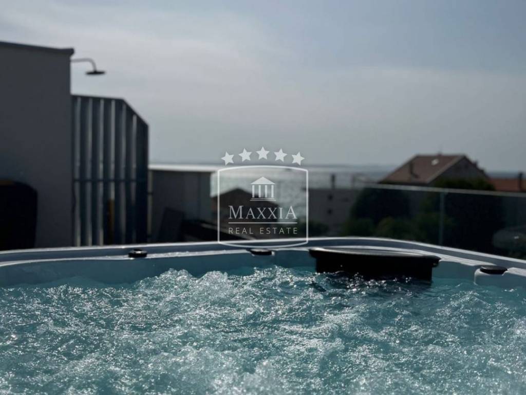Roof terrace (45 m2) with a large jacuzzi, outdoor shower, installations for summer kitchen with an open view of the sea.