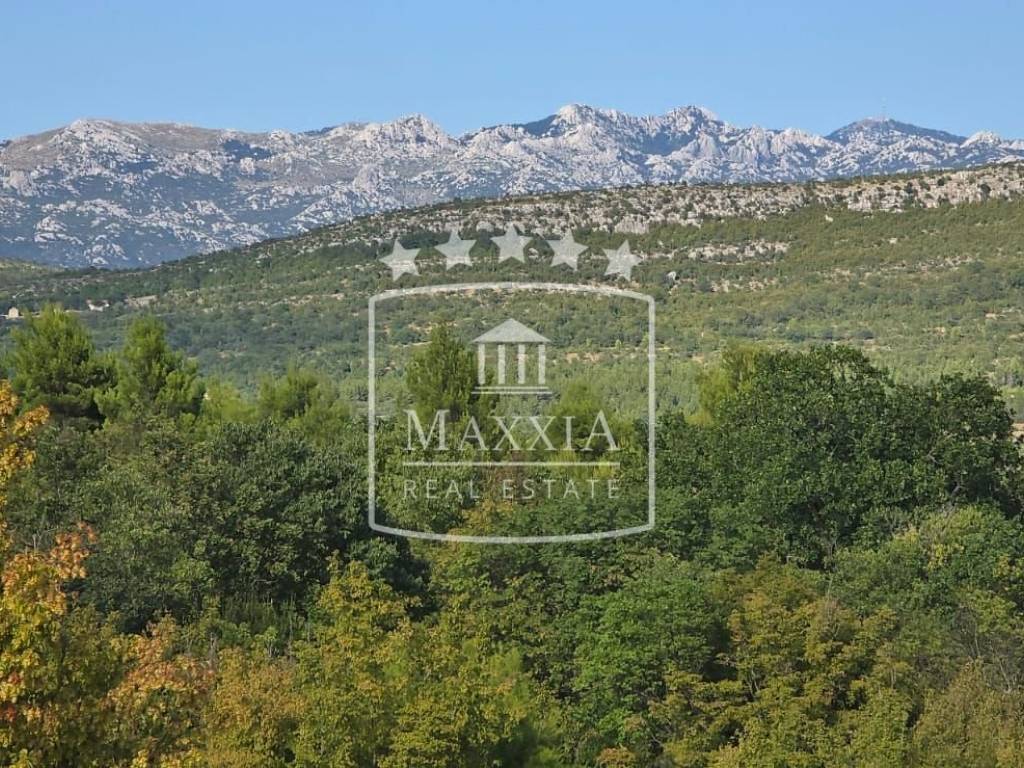 Attractive building plot with open views of the magnificent Velebit mountain range! Distance from the sea and beach is approx. 1.2 km, and about 2 km from the town center. All utility connections are nearby, and an access road is secured.