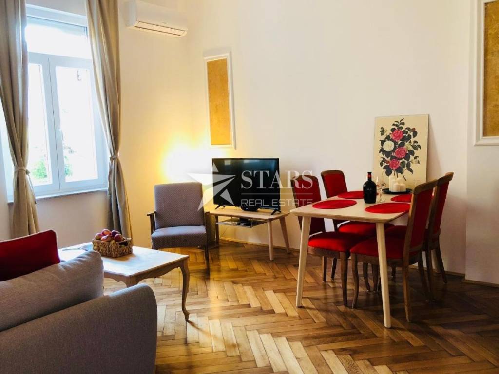 For sale: an attractive apartment in the heart of Opatija, located in the second row from the sea, ideal for investment or family living. The apartment has a total area of 96 m², with a large 15 m² balcony and additional storage space, and is divided into two modern apartments. Both apartments have excellent reviews on Booking.com and are currently operating as a successful tourist rental, allowing for immediate continuation of the business.