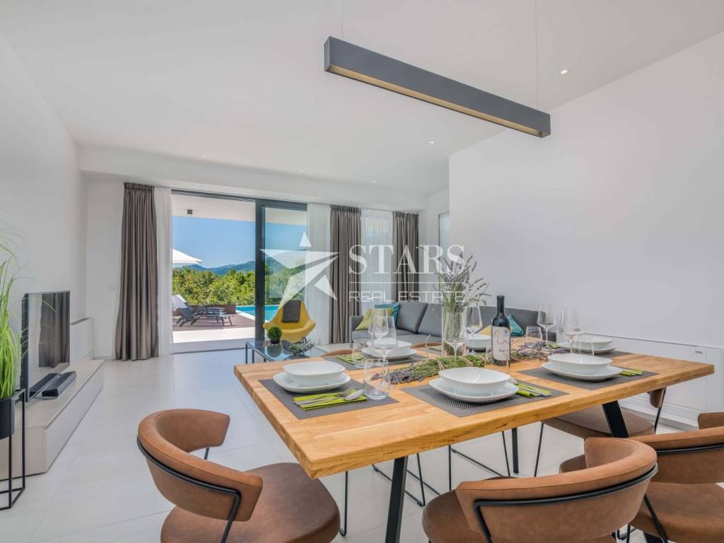 A new semi-detached villa built in 2022 is for sale, located in an idyllic micro-location in Veprinac, not far from Opatija.