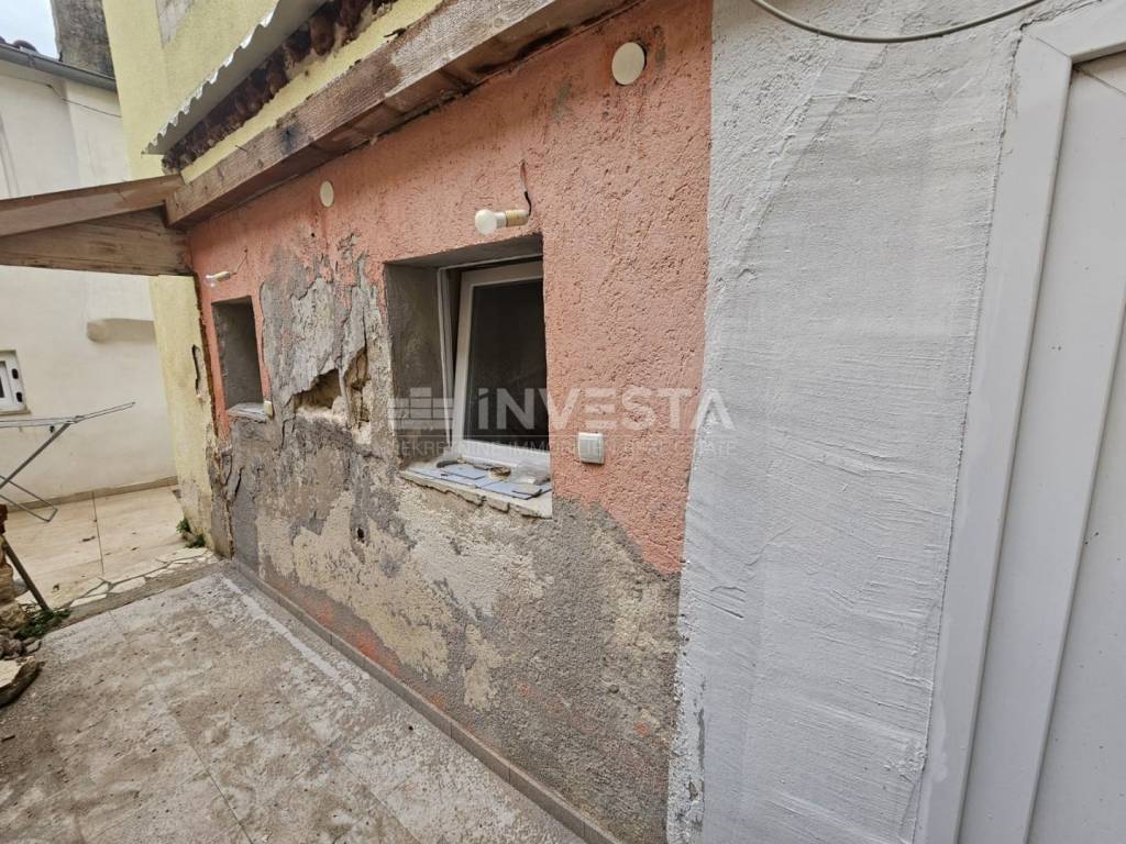 For sale is a partially renovated stone house located in the heart of Medulin, which needs to be finished. This house has three levels: ground floor and two upper floors. It consists of two residential units: a studio apartment on the ground floor and an apartment on the first and second floors, each with separate entrances in the yard. There is no parking space, so parking is possible in public spaces near the house.