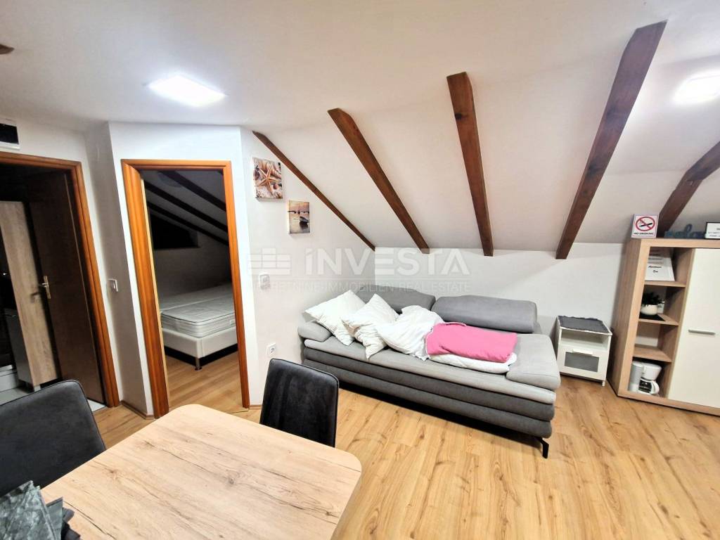 First residential unit (30m²) includes: Entrance hall Kitchen Living room with a bedroom Bathroom Small terrace Second residential unit (18m²) includes: Kitchen Living area with a small dining table and a bed Bathroom First Floor:
